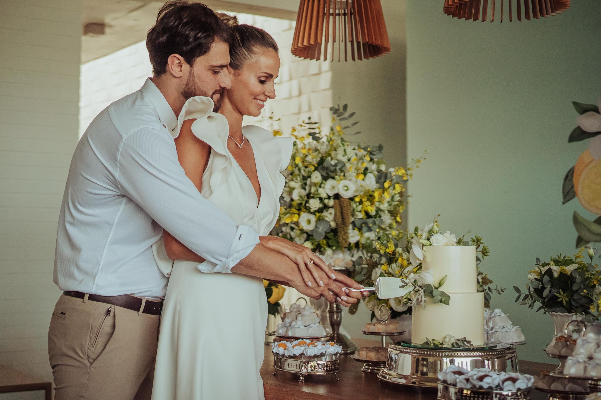 Planejamos novamente para abril de 2021, mas o agravamento da pandemia novamente nos fez refazer os planos da festa. Com isso, decidimos fazer um almoço intimista apenas para a família. A ideia seria comemorar, como era possível, nosso casamento civil. Isso porque não sabemos até quando estaremos nessa situação.
