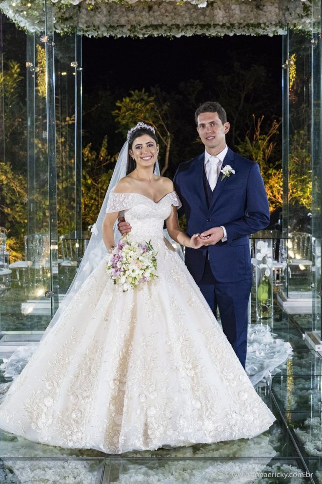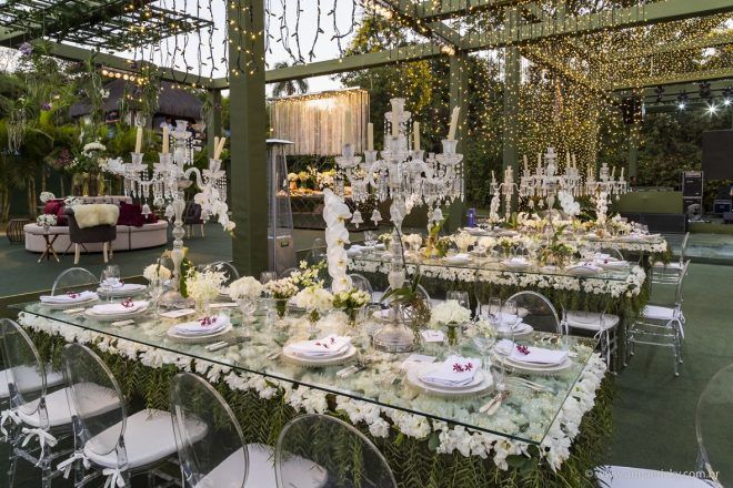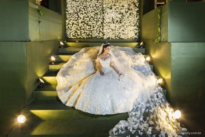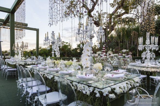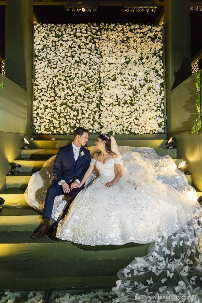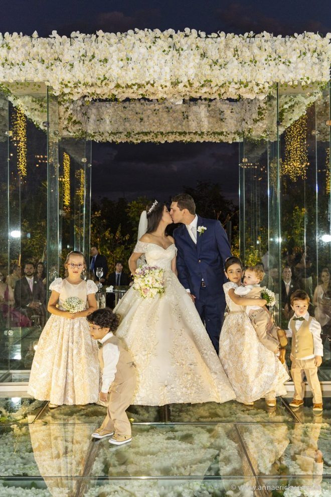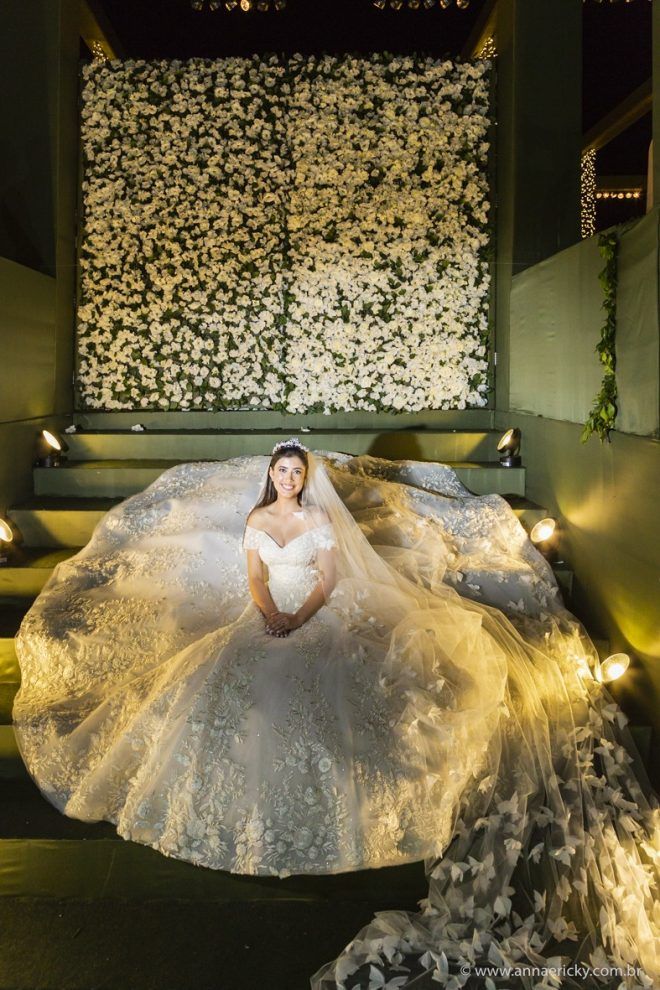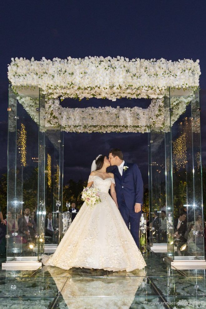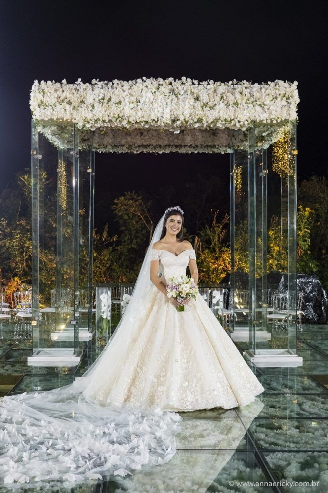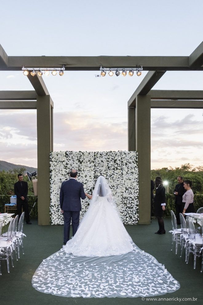 Que alegria poder receber tantos casamentos lindos aqui no blog. Como não amar?! O de hoje está tããão lindo, com noivos super conectados e um cenário impecável. Fiquei encantada com o vestido da noiva e o véu com borboletas. Me digam o que vocês acharam! A passarela transparente, com flores, ficou simplesmente demais. Mas não só a passarela, como a mesa dos convidados também. Que ideia genial! Era literalmente um jardim todo iluminado e mágico. O post está cheio de inspirações, uma mais linda que a outra.
