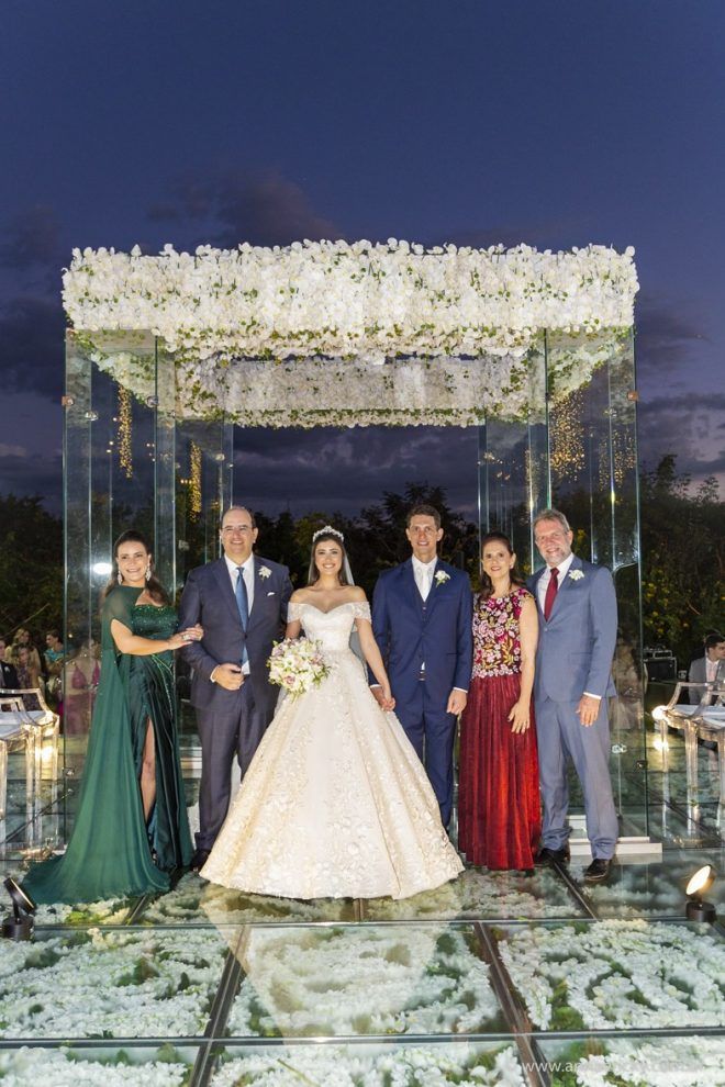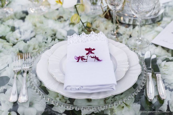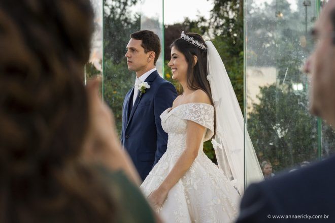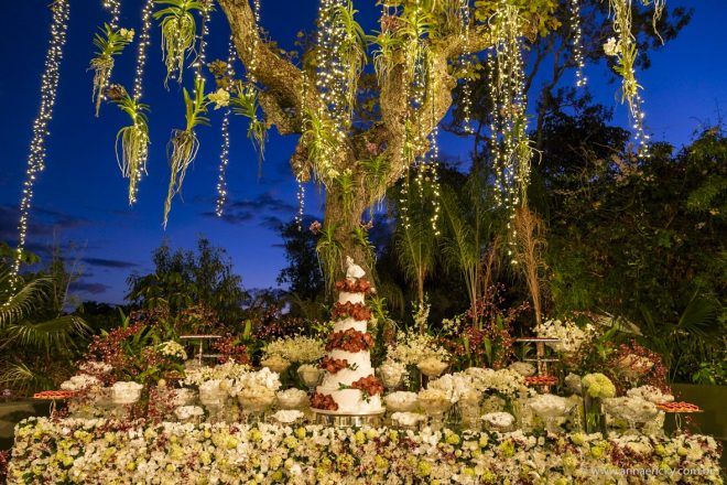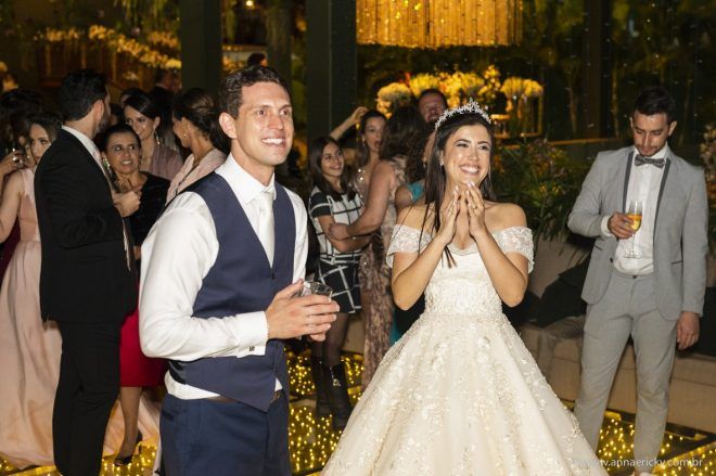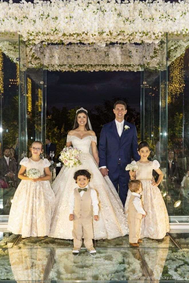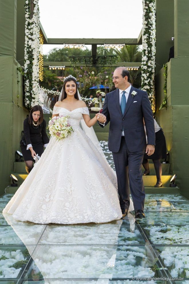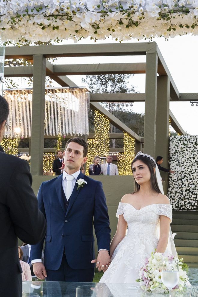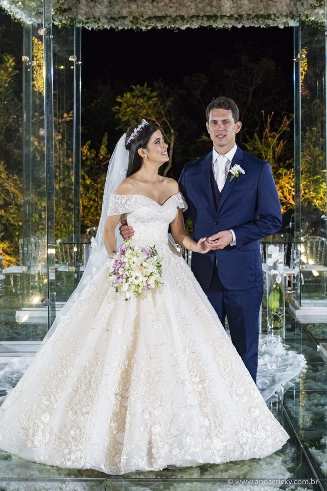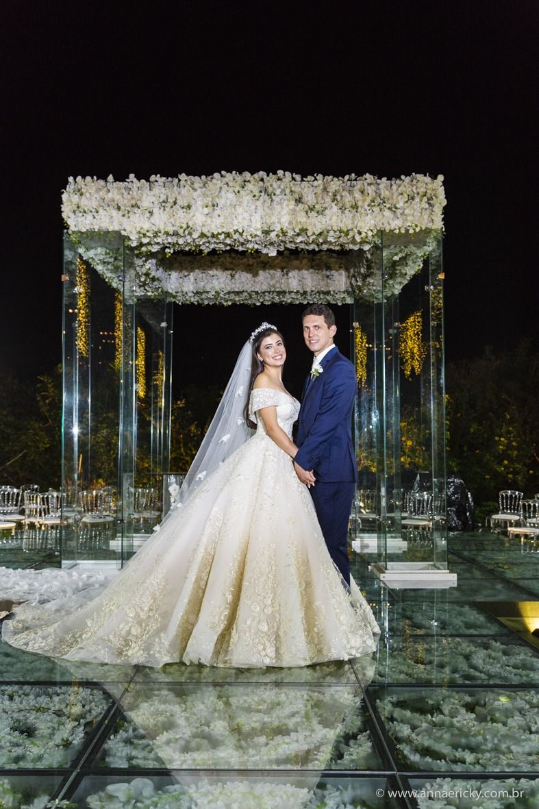 Que alegria poder receber tantos casamentos lindos aqui no blog. Como não amar?! O de hoje está tããão lindo, com noivos super conectados e um cenário impecável. Fiquei encantada com o vestido da noiva e o véu com borboletas. Me digam o que vocês acharam! A passarela transparente, com flores, ficou simplesmente demais. Mas não só a passarela, como a mesa dos convidados também. Que ideia genial! Era literalmente um jardim todo iluminado e mágico. O post está cheio de inspirações, uma mais linda que a outra.