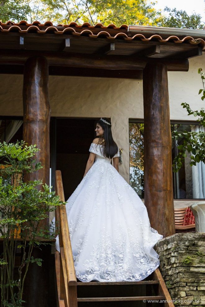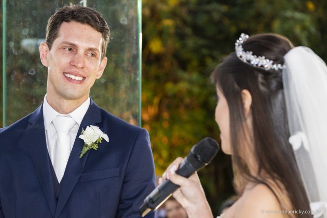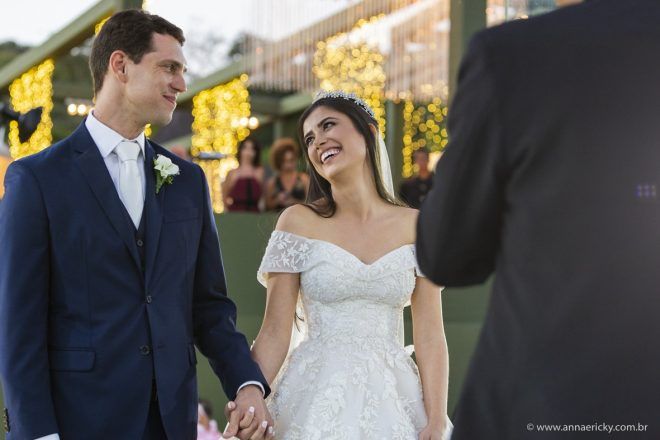 Nos casamos em Pirenópolis, uma linda cidade histórica aqui de Goiás, em um final de tarde bonito e iluminado. A grande maioria dos fornecedores eu escolhi em Goiás mesmo. As exceções foram os fotógrafos Anna Quast e Ricky Arruda e o Vinicius Credidio, que fez o filme. Conheci o Ricky no Casar de Goiania e adorei ele, as fotografias dele e os álbuns que ele me mostrou. Me emocionei vendo tudo aquilo e tive a certeza que queria que eles fossem os responsáveis por registrar o dia do meu casamento. Eles foram para Pirenópolis, conheci melhor a Anna, que complementa o Ricky com o jeito dela, e temos fotos lindas para relembrarmos tantos momentos felizes e emocionantes.” – Ariellem