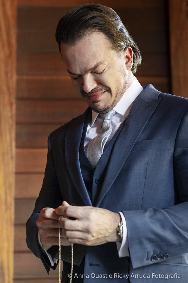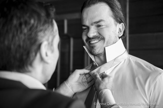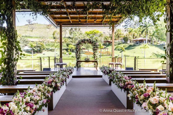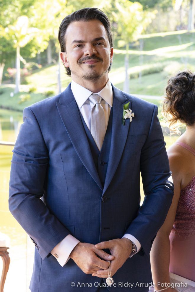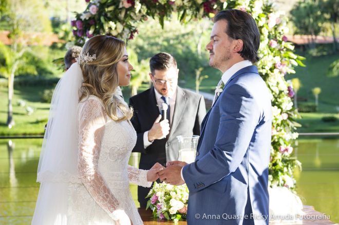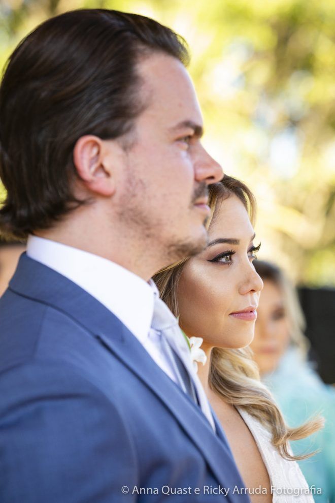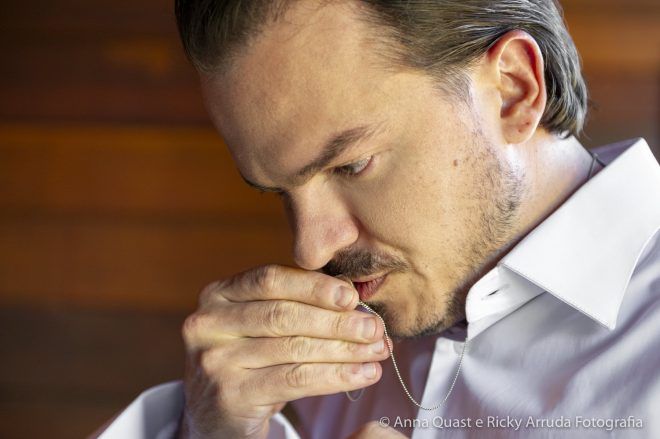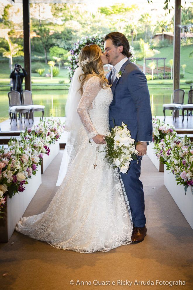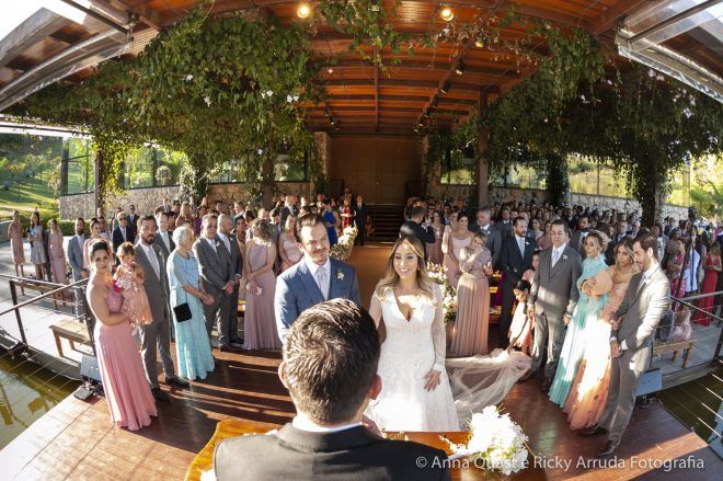 Mesmo com toda a sintonia e certeza que tínhamos na decisão, confesso que para mim os preparativos do grande dia não foram incríveis, mágicos como as noivas dizem, muito menos que daria saudades quando passasse. Tenho uma rotina bastante apertada, trabalho muito e a correria com todos os detalhes deixa qualquer um de cabelo em pé. Para o Samir também, que é advogado e precisa lidar com prazos. Mas, podemos afirmar que alguns fornecedores foram essenciais para tornar a jornada até nossa data mais leve, segura e prazerosa. Foi o caso do Ricky Arruda e da Anna Quast, nossos fotógrafos e hoje amigos. Na primeira feira de eventos que visitamos, conhecemos o Ricky quase que por acidente. Além do trabalho impecável de fotografia que ele faz com a Anna, que desconheço igual, ele me ganhou no momento em que abandonou o próprio stand e começou a nos ajudar com a locação do espaço – não tínhamos nada, apenas a ideia fixa de casar no campo. O Ricky ligou para os lugares que tinham a ver com o que queríamos (Brinco que ele foi meu assessor, muito antes de contratar assessoria, que ele disse que era essencial eu contratar); e com o mês definido nos disse as possibilidades que ainda nos restavam e escolhemos o Terras de Clara, um lugar maravilhoso e com um tratamento espetacular.