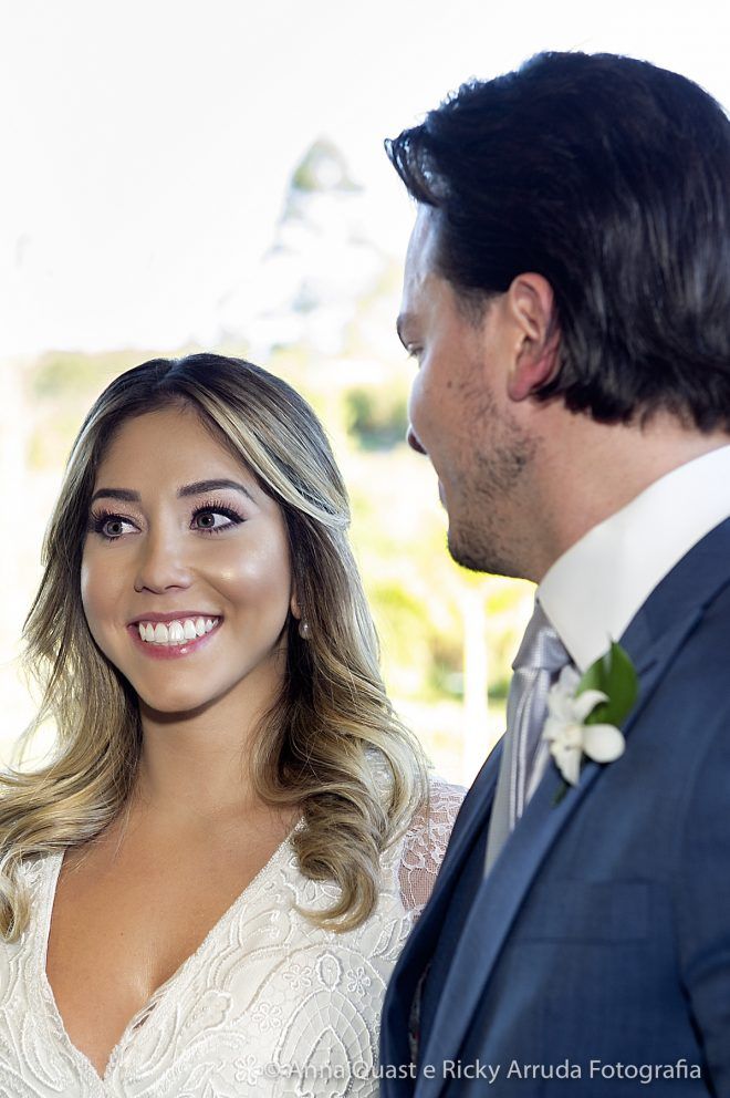 “Nos conhecemos em um bar por uma amiga em comum, a Nath. A primeira vista não nos notamos. Estávamos em uma turma grande e nem nos falamos muito. Foi ela quem agiu como cupido, a Nath achava que tínhamos algo em comum e fez a ponte entre nós. Estrategista, falou para o Samir que eu tinha gostado dele e fez o mesmo comigo, me disse que ele havia comentado de mim para ela. Alguns dia depois, criaram um grupo no WhatsApp com a turma toda e marcaram outro evento, a partir dali fomos nos conhecendo mais e, claro, com aquela curiosidade aguçada, depois de ambos saberem do suposto interesse um do outro (rss). Com algumas mensagens privadas e investidas por parte dele no meio, saímos novamente com o pessoal. Conversamos bastante e acabamos ficando. De lá para cá parece que o tempo voou. E de fato foi o que aconteceu! decidimos tudo muito rápido, com 6 meses de namoro já estávamos vendo a data do casamento e os fornecedores da festa. Desde o início sabíamos o que queríamos e nossos ideais já se encaixavam.