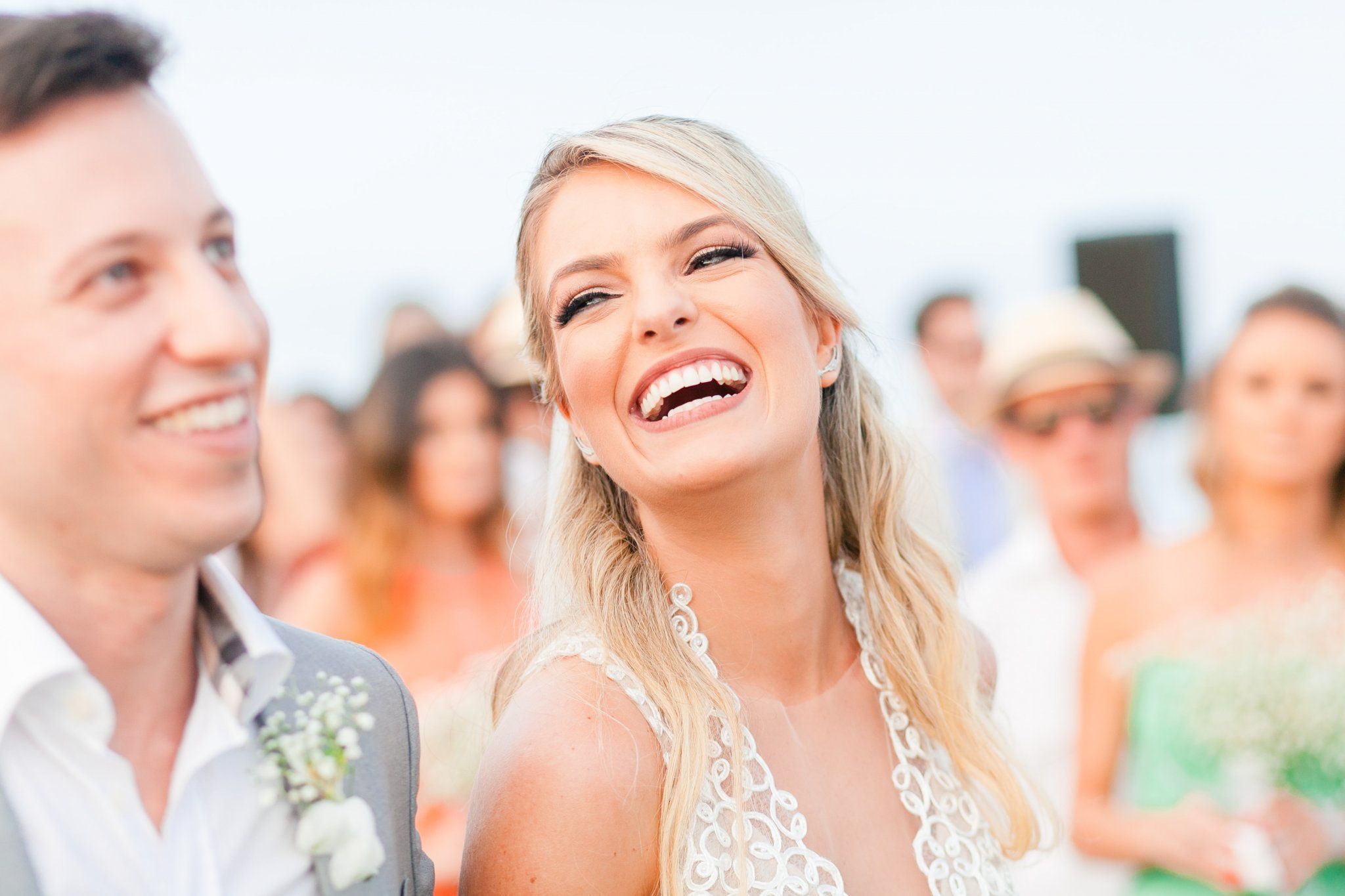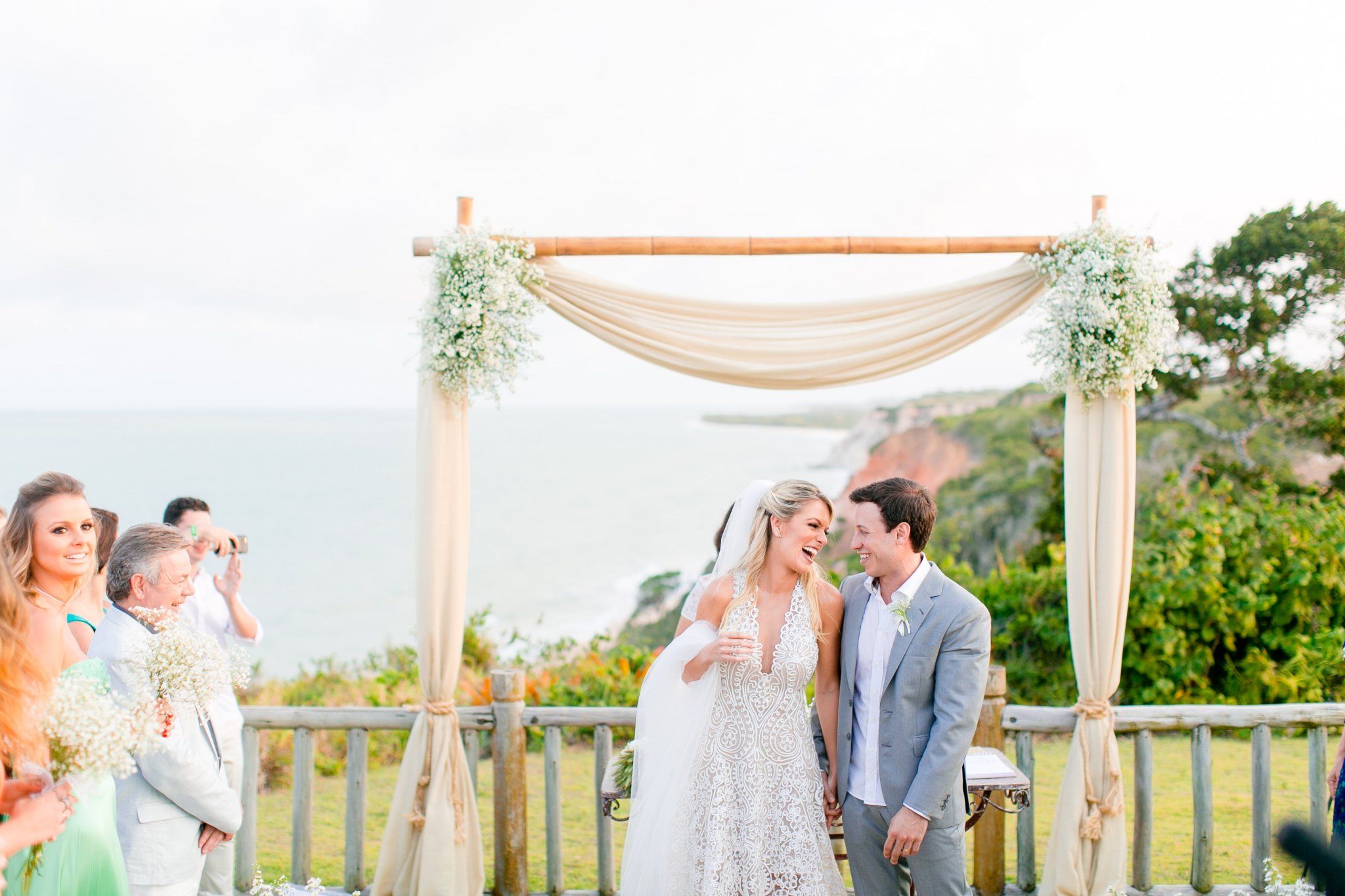 Deslocamos 270 pessoas de Santa Catarina, SP e Rio para a Bahia para um final de semana que começou com nosso Welcome Drink pé na areia na sexta-feira e a lua cheia mais linda que já vimos, continuou com o pôr do sol perfeito e muita choradeira na nossa cerimônia e terminou domingo, depois de mais de 14 horas de festa seguidas. Foi melhor que um sonho”.