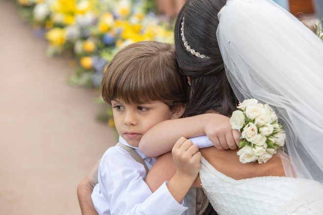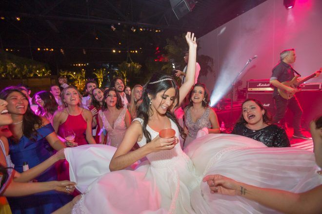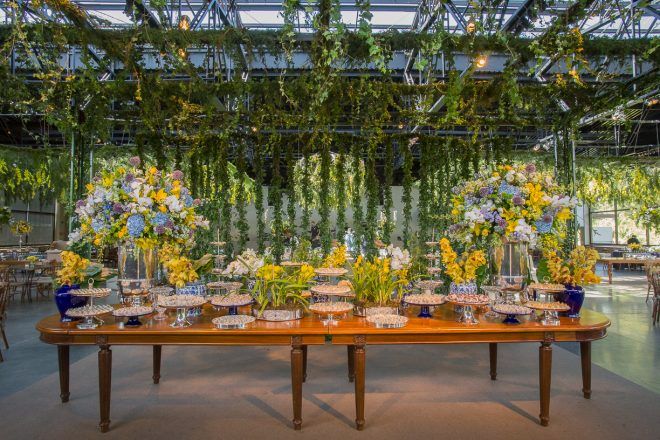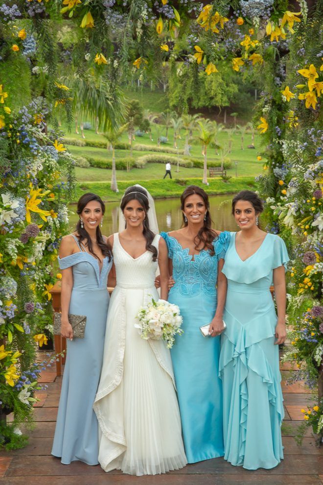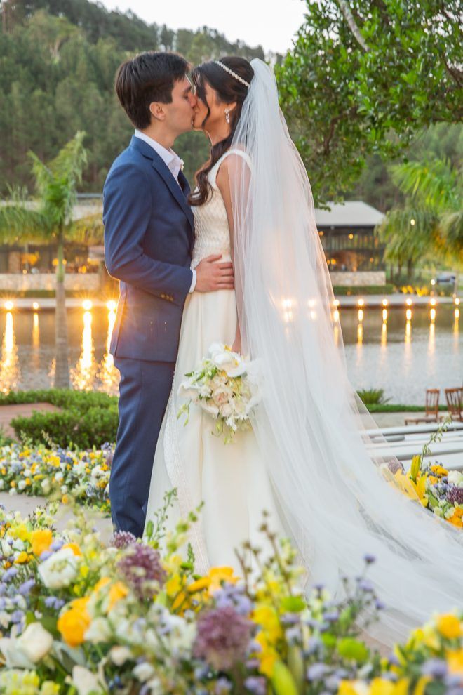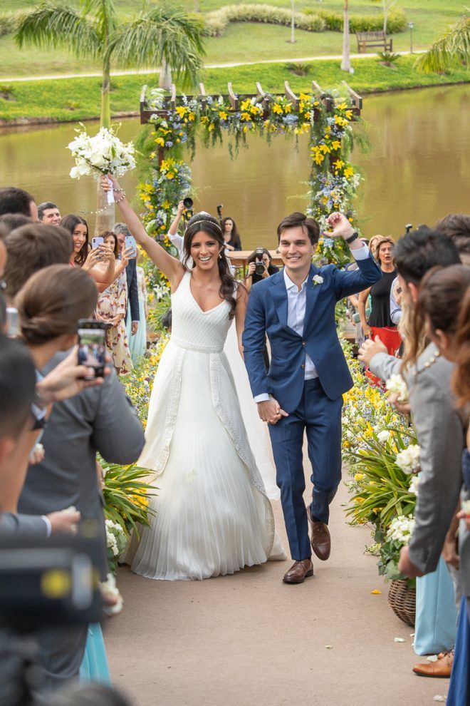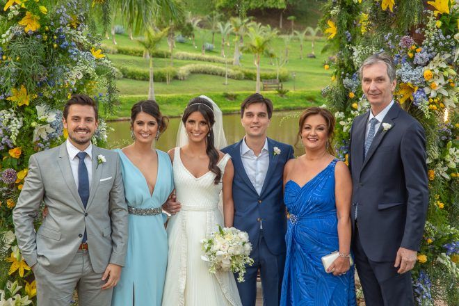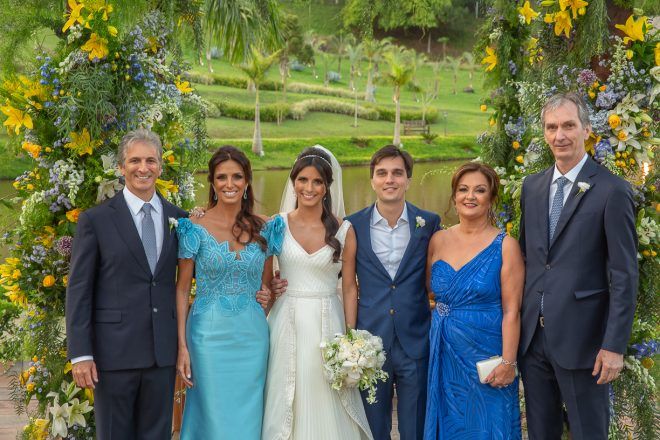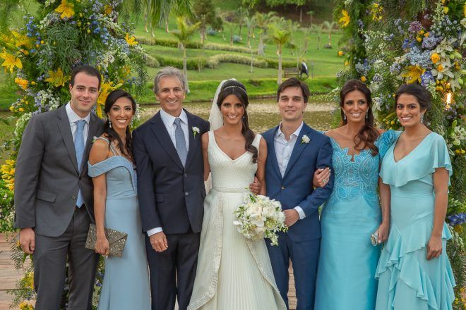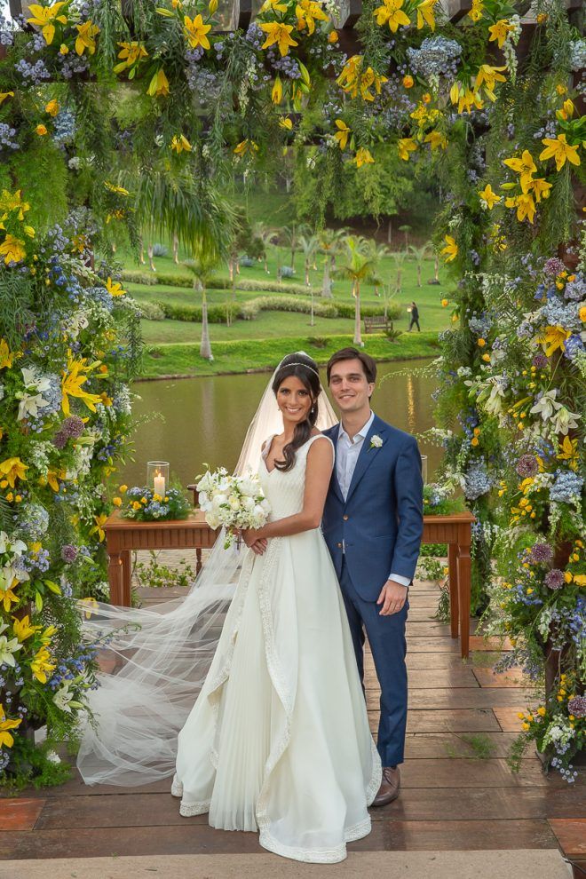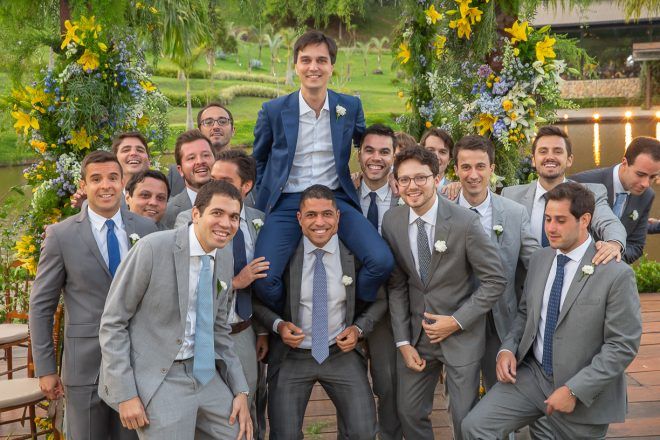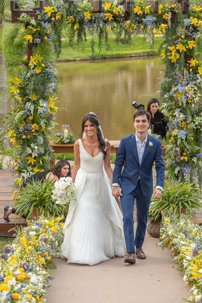 Tivemos uma cerimônia perfeita em um cenário dos sonhos. Flores amarelas trazendo alegria, misturadas ao azul e branco que traziam um pouco de romantismo ao ambiente. A banda e o DJ garantiram o agito da festa por quase 12 horas…