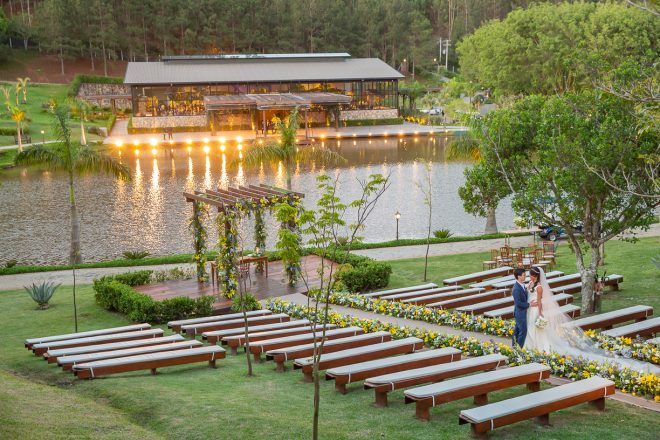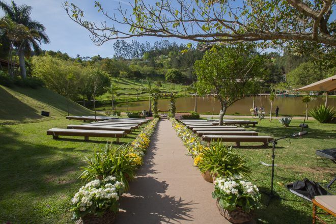 Desde o começo queríamos uma cerimônia no campo e a céu aberto. Não queríamos apenas uma noite, mas sim prolongar esse momento ao máximo podendo curtir ao lado de pessoas queridas. Além disso, sempre sonhei em casar com o sol batendo no rosto. Assim, começamos buscando as fazendas próximas à região de Itatiba e conhecemos o Terras de Clara que além de uma paisagem maravilhosa conseguia nos proporcionar tudo aquilo que buscávamos.