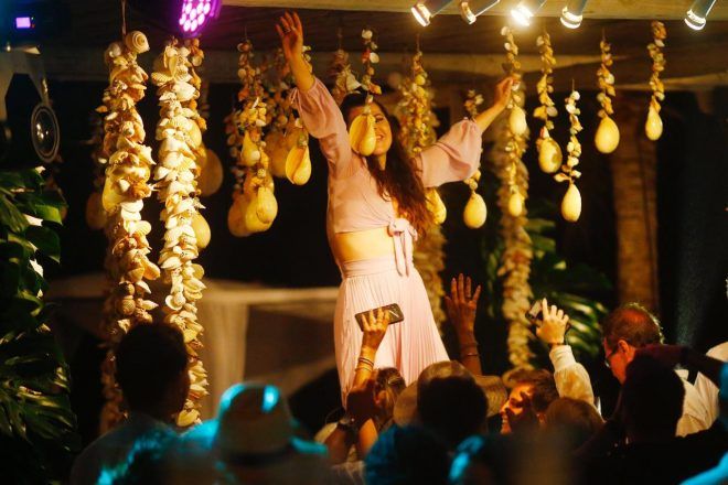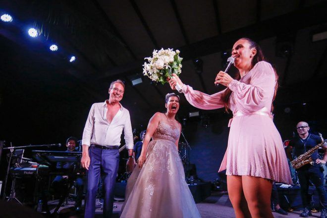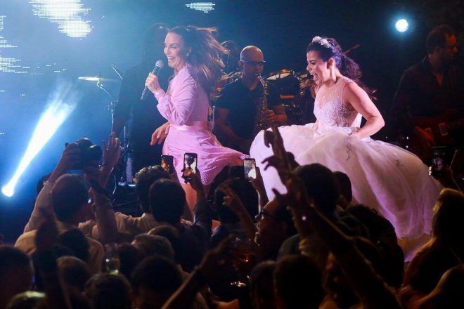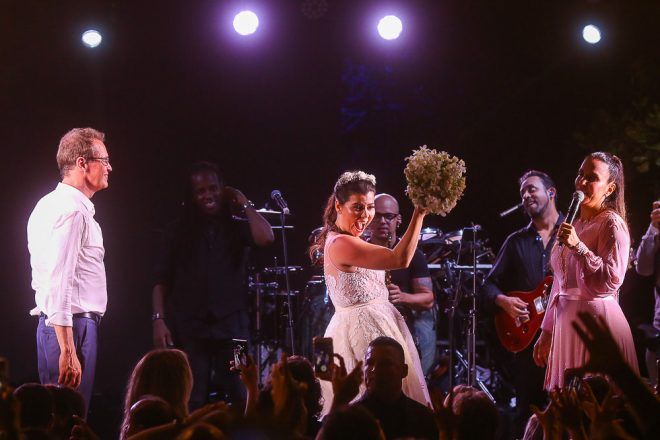 E logo depois da cerimônia foi o show da cantora Ivete Sangalo , a baiana cantou por três horas e interagiu com os noivos e convidados.