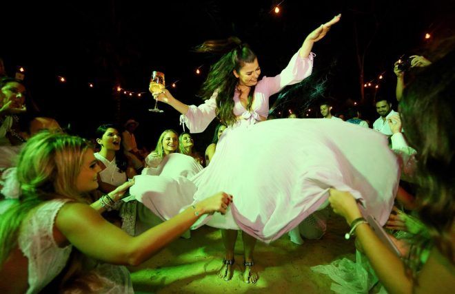 Na sexta (16), foi dia de luau na pousada Itapororoca Villa e os convidados participaram com dress code branco. A noiva estava com um conjunto lavanda feito também pelo estilista Marcelo Quadros. O DJ Marcelo Botelho comandou a festa.
