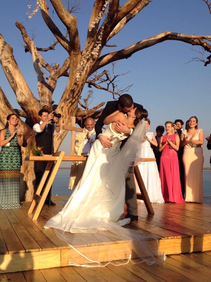 O casamento foi uma cerimônia pequena, no final da tarde, embaixo da árvore na beira da represa que sempre pensei em me casar. O dia estava lindo!