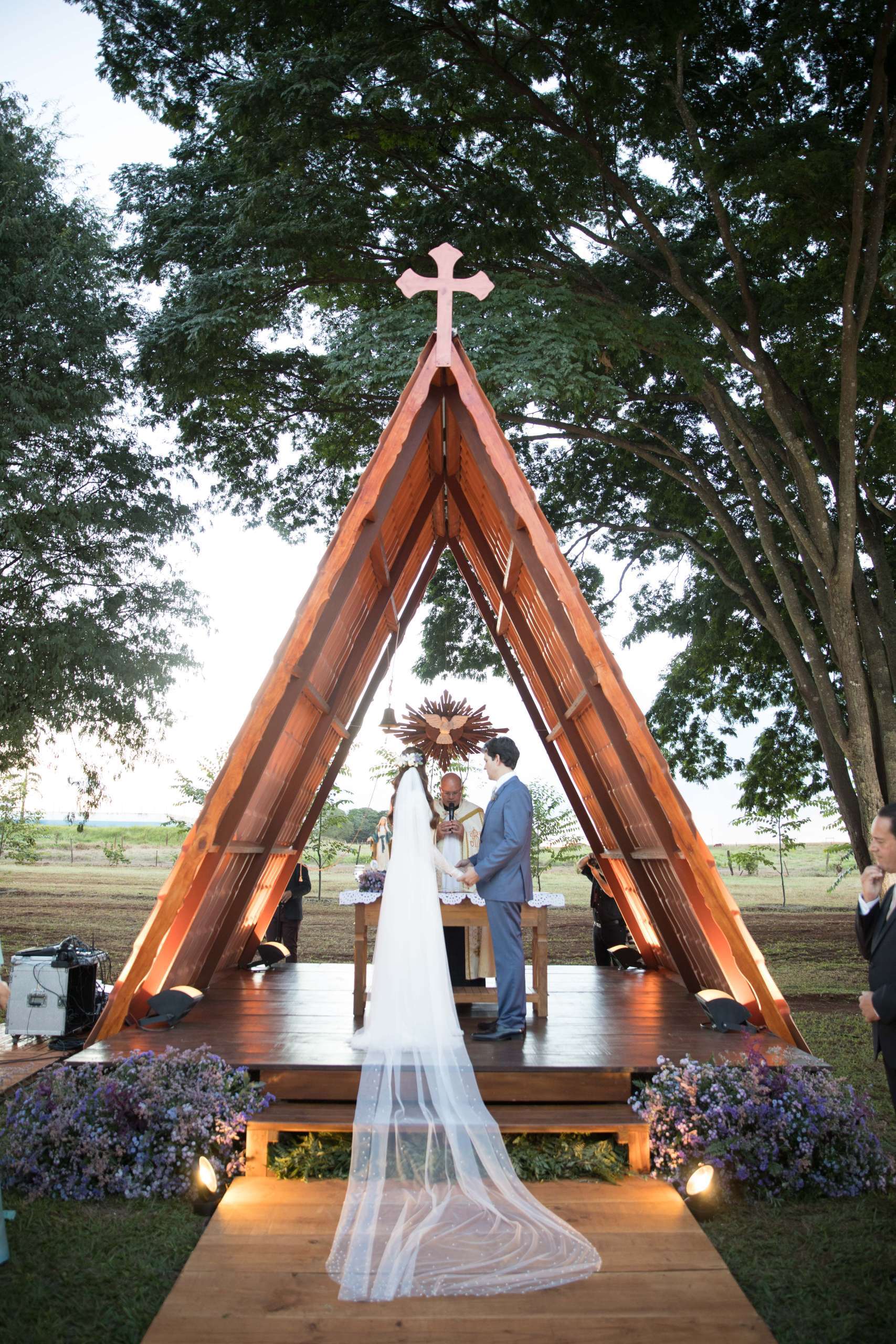 “Eu e o Paulo nos conhecemos há 7 anos e nosso primeiro encontro foi em pleno carnaval. Desde então começamos a namorar e não nos desgrudamos mais…foi amor a primeira vista mesmo! Há 1 ano e 10 meses, em julho de 2017, durante uma viagem ele me pediu em casamento. A partir daí começamos a pensar no casamento e como tudo seria. Eu sempre quis casar no Haras da minha família no final da tarde e foi a partir daí que surgiu a construção da capela idealizada pela minha mãe, Verena.