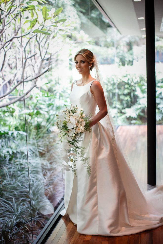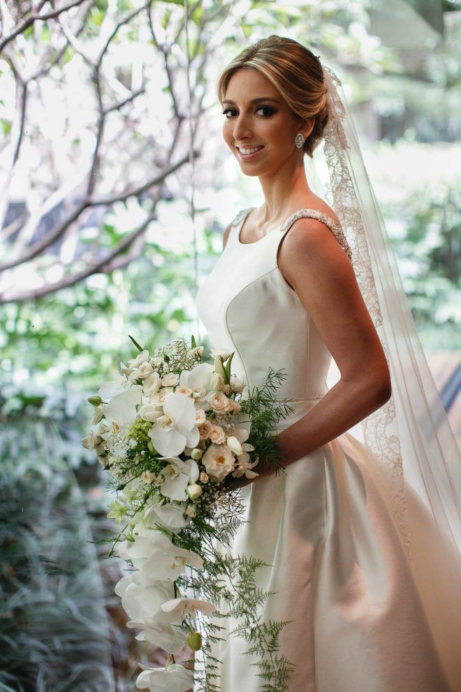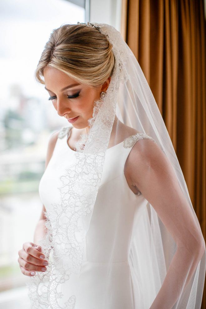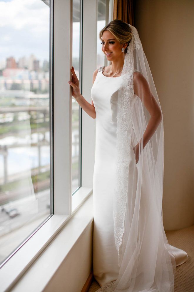 Fui para Miami com a minha mãe e irmã em Nov. 2016 e nem precisei procurar muito. O vestido Rosa Clará é a minha cara, clássico, atemporal, mas moderno, fugindo do óbvio. O véu também foi Rosa Clará, acessórios Renata Bernardo, e jóias Van Cleef & Arpels. O penteado e a maquiagem ficaram nas mãos do talentosíssimo Michel Nakamura.