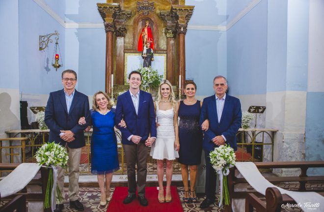 “Como nossa família é do interior, uma semana antes, decidimos fazer algo bem intimista, somente com os familiares mais próximos, em Poços de Caldas – MG. Escolhemos a Igreja de Santo Antonio, primeiro porque sou super devota e segundo por se tratar de uma igreja bem pequenininha e liinda! A cerimônia foi emocionante e depois seguimos para um almoço.