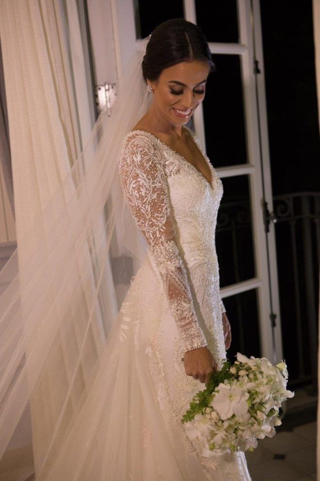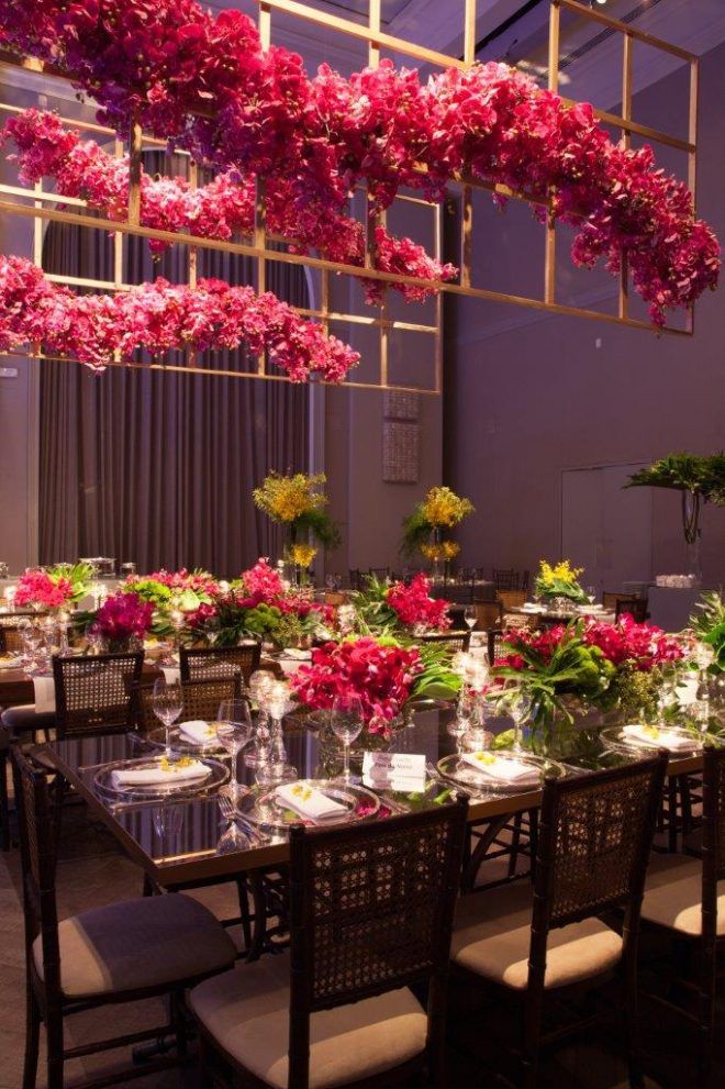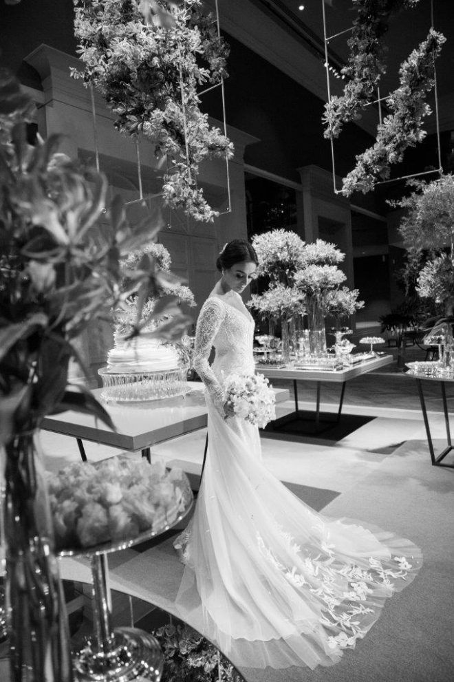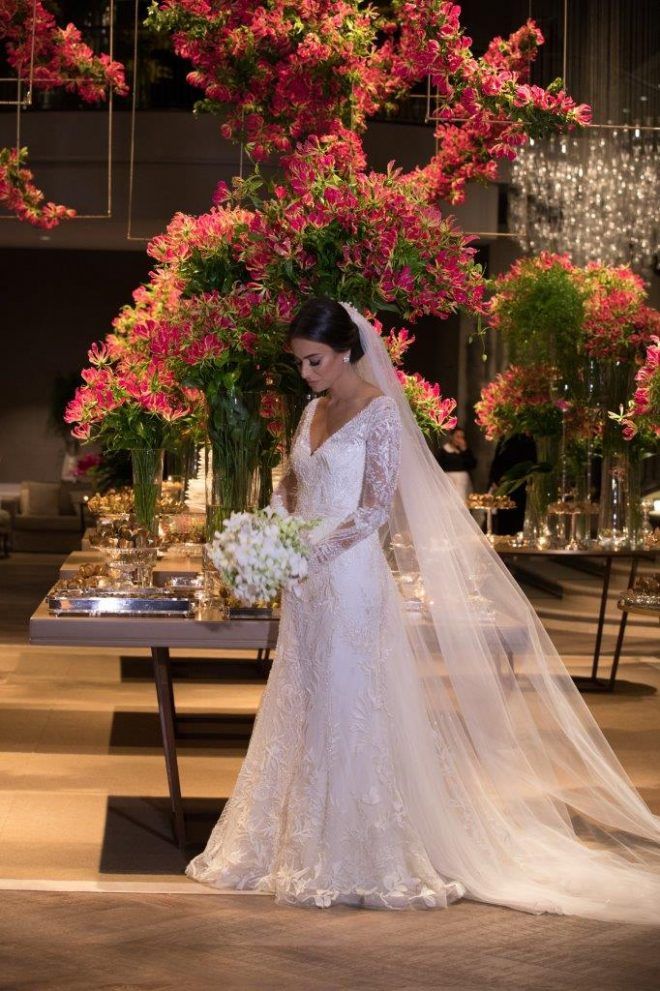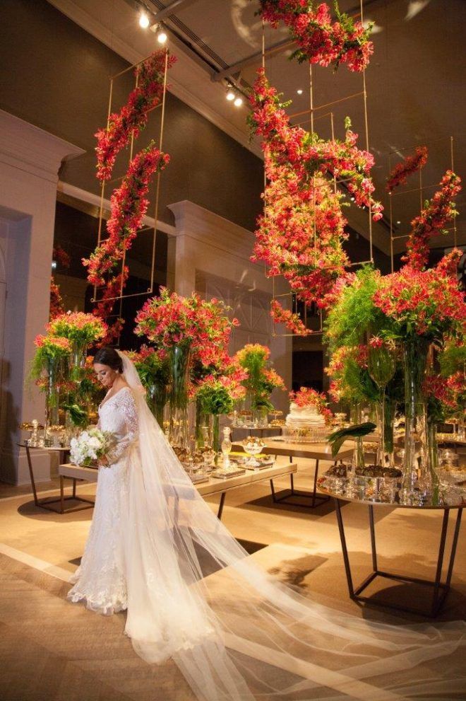 Vamos hoje ver um casamento super inspirador! Uma noiva cheia de leveza e elegância, em um casamento deslumbrante. Amei os diferentes arranjos suspensos na festa: na mesa do bolo, dos convidados e no bar. Ficou tudo lindo!!! Depois me digam o que acharam!