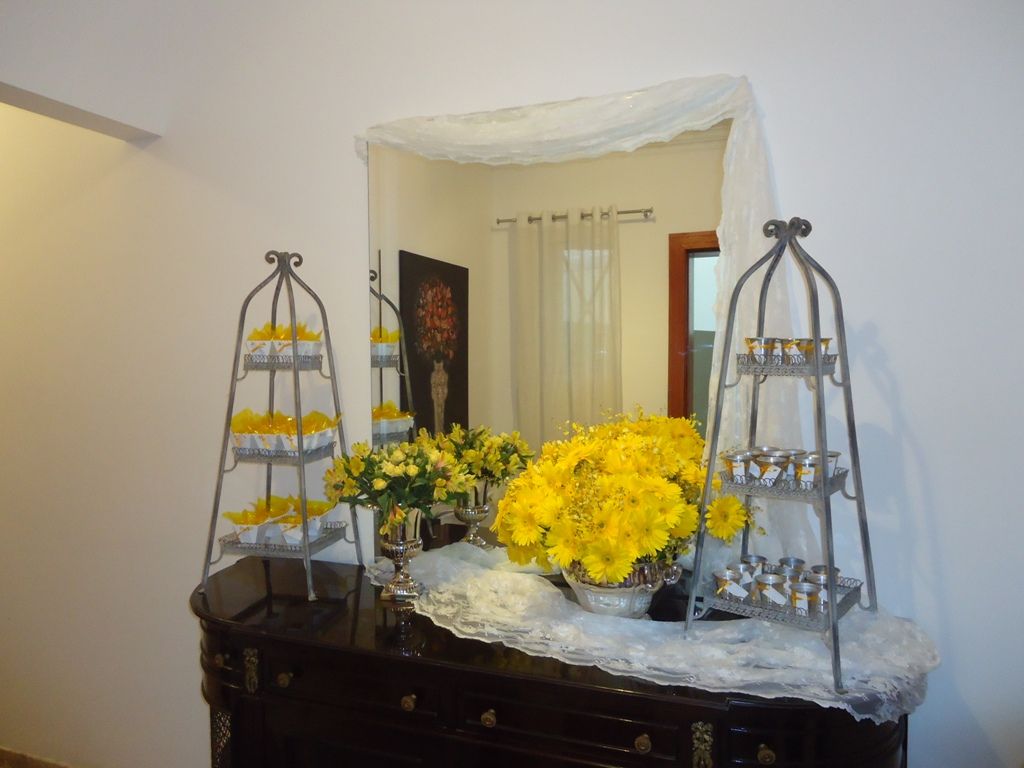 A mesa de doces estava um charme!!! Tudo amarelo, super alegre!