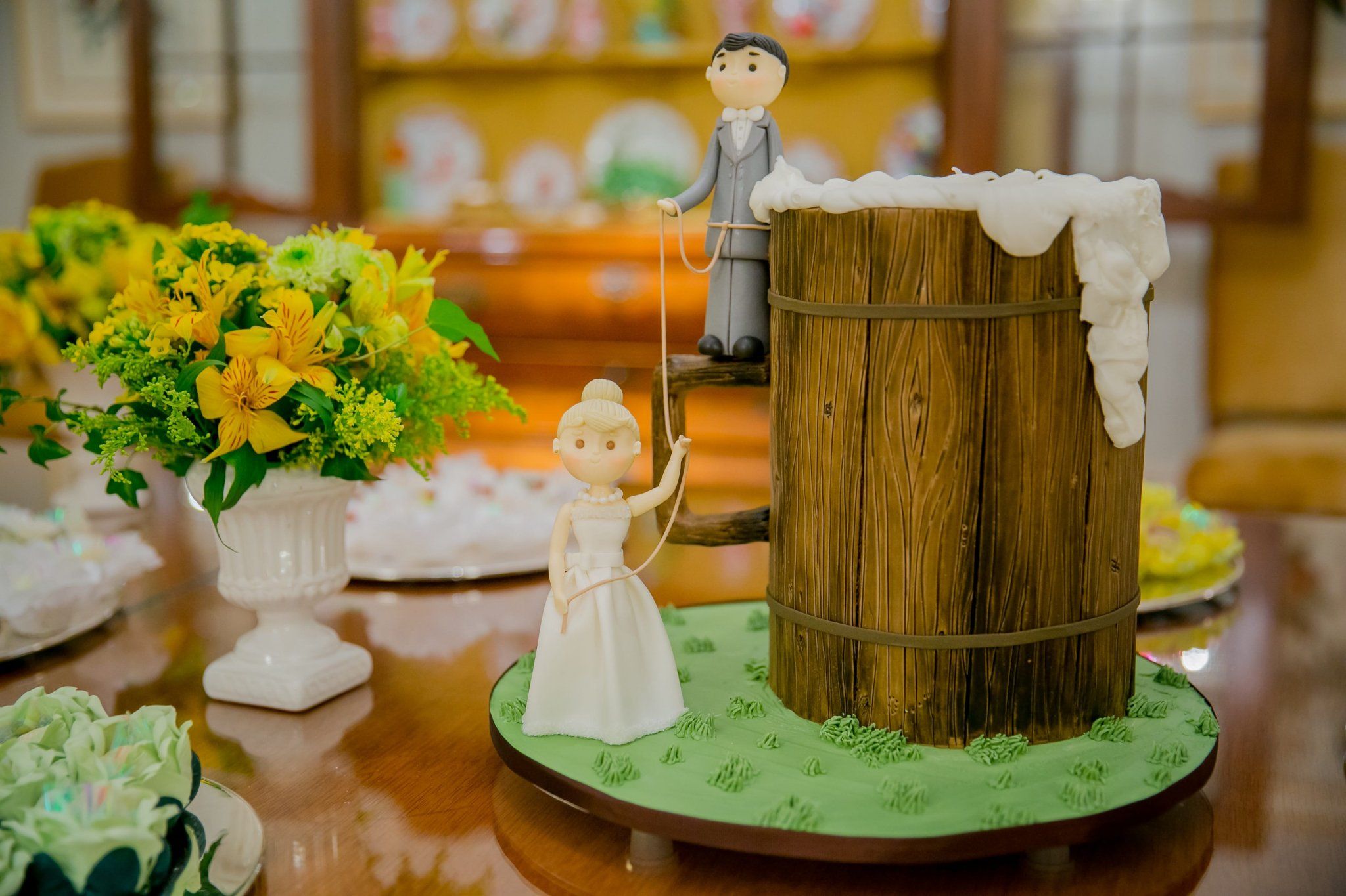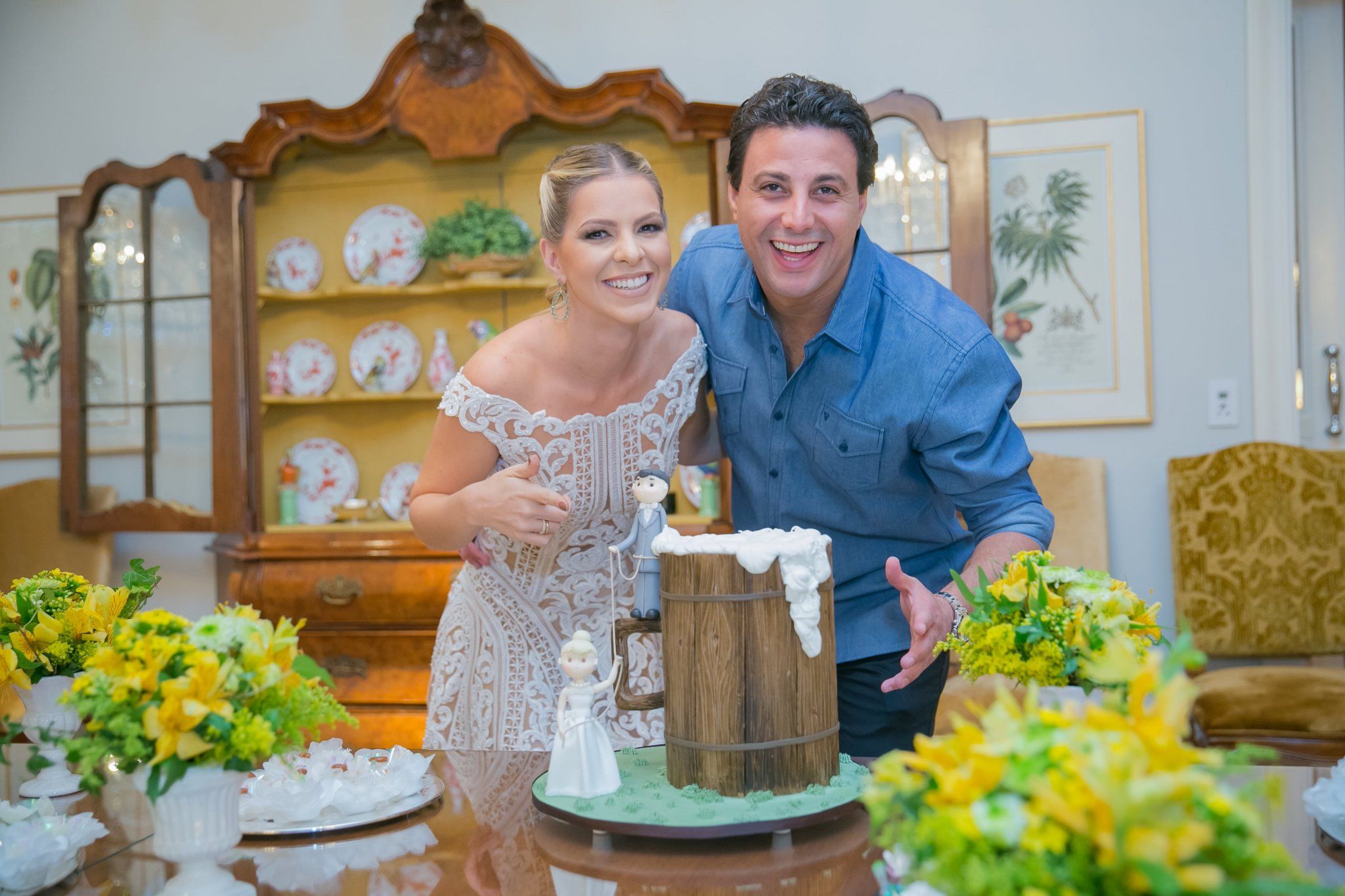 Estou adorando a combinação de cores azul e amarelo – ela deixa o ambiente chique e alegre ao mesmo tempo. Essa foi a decoração do chá bar da Carol e do Daniel, que se conheceram em uma festa em Ribeirão Preto. O pedido de casamento veio no aniversário de dois anos de namoro.