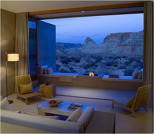 Esse hotel, o Amangiri, faz parte do grupo Áman Resorts (um mais incrível que o outro!). Esse que eu selecionei para vocês fica no meio do deserto Canyon Point, no sul de Utah, perto da fronteira com o Arizona. Uma paisagem linda, linda.