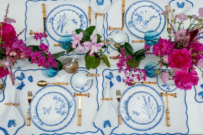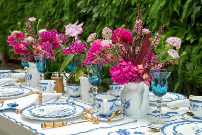 Produção: Vamos Receber | Todos os produtos da mesa: Theodora Home | Arranjos florais: Milplantas