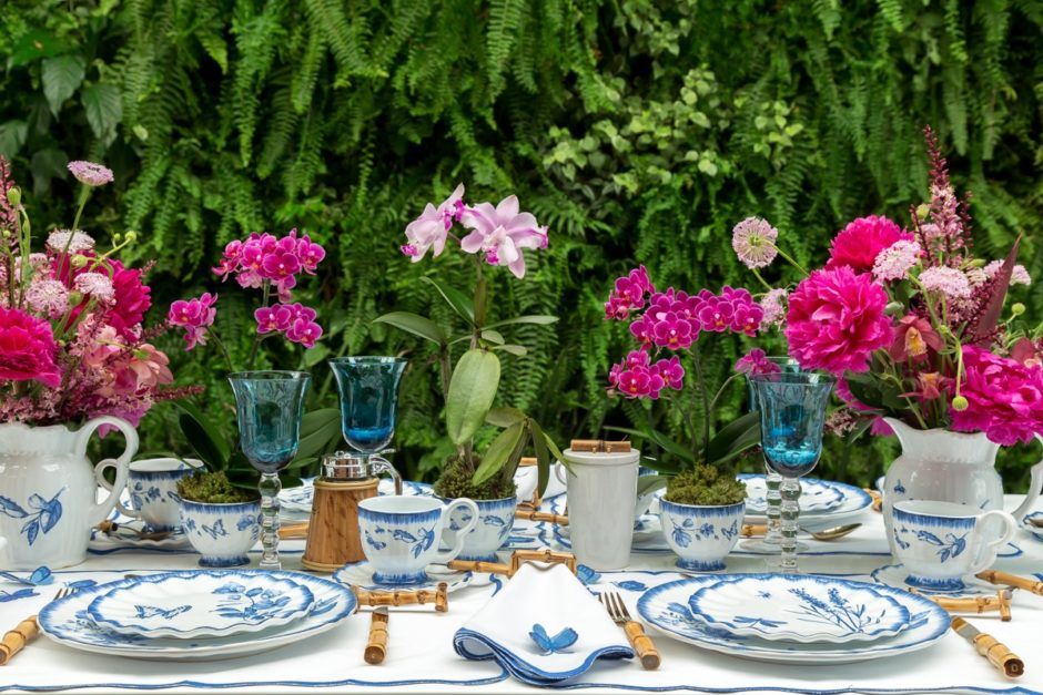 Produção: Vamos Receber | Todos os produtos da mesa: Theodora Home | Arranjos florais: Milplantas
