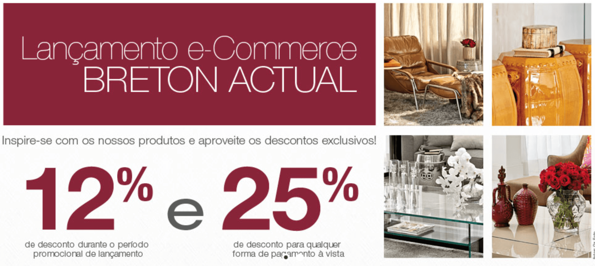 Reconhecida pelo seu DNA de inovação, a Breton Actual, especializada em móveis para área externa e interna, por meio do endereço www.breton.com.br , a marca chega ao mercado virtual pensando no consumidor que preza pela qualidade no atendimento, praticidade e, ao mesmo tempo, uma loja de confiança que não abre mão da sofisticação. São mais de 400 produtos, entre sofás, mesas, cadeiras e acessórios para decoração.
