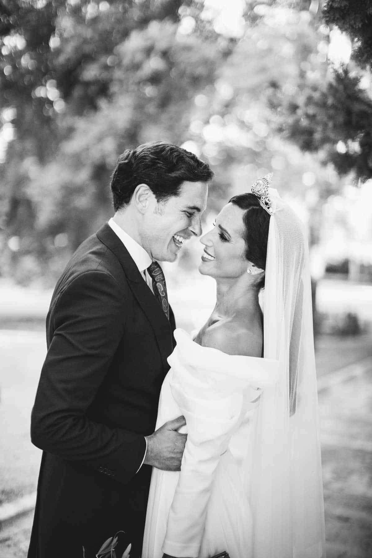 “Eu que desenhei as mangas. Assim que trouxe o vestido pra casa vi que estava faltando alguma coisa e de repente visualizei aquele enfeite de organza em meus sonhos e contei para minha mãe. Ele adorou a ideia e começamos a trabalhar nisso. Compramos a organza e procuramos uma costureira especializada em noivas que pudesse fazer bem rápido porque isso foi 4 dias antes do casamento. Mas definitivamente valeu a pena o estresse, porque eu acho que foi a cereja do meu vestido. A sobressaia e cauda foram feitas por María Roch, a partir de um chiffon de seda ideal e com uma queda espetacular. Foi um sucesso ter escolhido a Maria. A segunda saia de tule com brilhantes que usei na festa depois de dançar a valsa é uma peça única de Sophie et Voilà. Minha mãe me deu a ideia de virá-lo para que os strass ficassem na cintura e nos quadris, e não abaixo, conforme planejado. ” – Aida