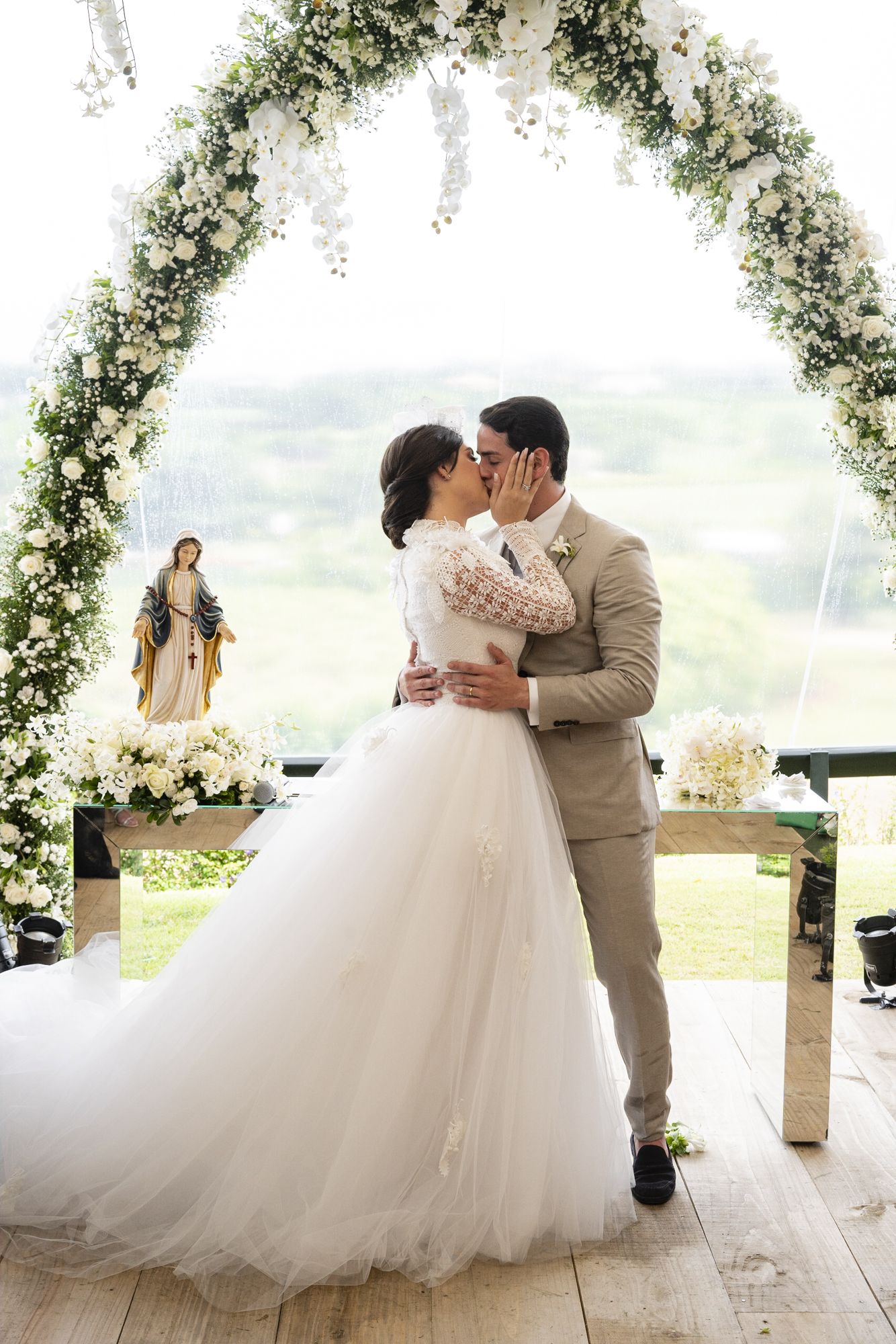 “Nosso dia mágico surgiu de uma brincadeira com três meses de namoro, com direito ainda a anel de brioche do café da manhã na cama. E essa ideia foi crescendo na nossa cabeça até ficar impossível para os dois voltarem atrás, e assim decidimos por uma festa relâmpago organizada em um mês. Mas meu sonho de princesa não podia deixar faltar nada. Por sorte o Dannilo Camargo, meu amigo e decorador dessa festa linda me ajudou a tirar tudo do papel e foi me fazendo acreditar que meu conto de fadas poderia ser realizado. O lugar perfeito com a paisagem linda cheia de natureza encontramos na Fazenda Boa Vista ao som dos maravilhosos Zeeba, Thiago Abravanel, Henrique e Diego, Afonso Nigro e Audax, saboreando tudo pelas mãos do WeCook, Nininha Sigrist e The King Cake.
