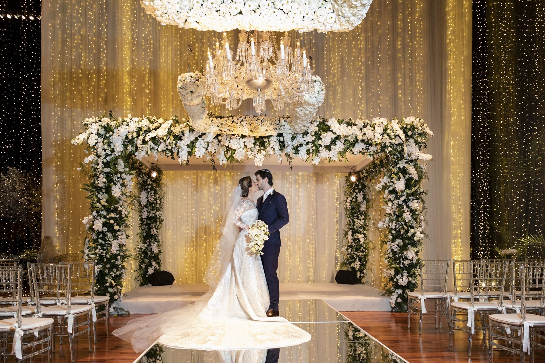 Ter uma equipe de apoio como a que eu tive foi fundamental. Contamos com o extremo profissionalismo da assessora Mari Bedaque, que em 48hrs refez todo planejamento de forma impecável. Lethicia Bronstein, nem sei por onde começar a falar dela. Além de extremamente competente e talentosa, seu carinho e afeto fizeram com que o meu sonho de menina se tornasse realidade por meio de um vestido deslumbrante. Marco Diniz, maquiador e cabelereiro que, sem dúvida nenhuma, quero levar para minha vida. Fabi e Renata , da Casa Vasconcellos, responsáveis pelas jóias maravilhosas que usei e que complementaram de forma delicada e sofisticada o meu visual. Ateliê Filmes e Fernanda Scuracchio, que time! Com um olhar extremamente sensível, não se limitaram a imagens, conseguiram captar emoções que ficarão eternizadas em nossas vidas. DJ Renatinho e Banda Off The King, que com a sua energia e vibração, nos fizeram dançar até as seis e meia da manhã. Impossível não destacar também as vozes do coral Misiuk, que emocionaram a todos na Igreja. Essa equipe fez do dia 01.11.19, o melhor dia das nossas vidas, que com certeza será relembrado pelos nossos amigos, familiares e por nossas menininhas que estão por vir!” – Maria Gabriela