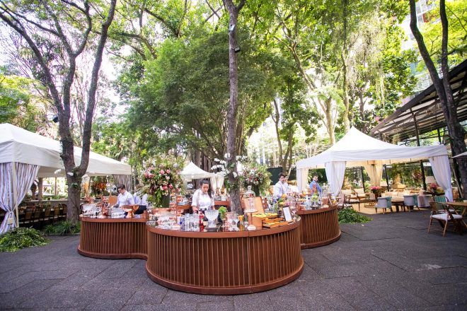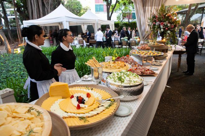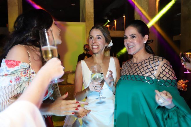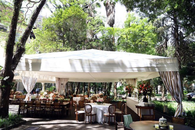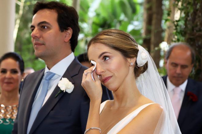 Quando eu fiquei noiva eu queria fazer um almoço só para as famílias, mas minha mãe queria muito que fizéssemos uma festa, e no final eu e Sérgio demos o braço a torcer. Mas, a gente queria fazer uma festa pequena e meu sonho sempre foi casar na casa dos meus avós. Só que meu avô tem 102 anos e levou um tombo sério no começo do ano. Então, se eu fosse me casar na casa deles (que é um lugar em que a gente está lá, nossa família almoça junto, durante a semana é um entra e sai, sempre tem encontro de primos e etc.), ia ter muito barulho para o meu avô, porque teria que montar uma estrutura no jardim e etc. Aí eu falei: “Bom, vou procurar um lugar para fazer a festa”. E eu sempre tinha na cabeça que eu queria fazer um casamento para, mais ou menos, 350 pessoas, mas no final acabou crescendo. Nosso casamento foi para quase 600 pessoas. Mas, eu sempre quis me casar durante o dia. E eu havia me esquecido do Yach…Aí quando eu lembrei de lá eu levei a Mari Linhares (que é minha prima, arquiteta), para ver se a gente bolava algo diferente do que sempre acontecia lá. Foi aí que a gente aproveitou muito o espaço de fora. Por mais que eles já tivessem feito casamentos ao lado de fora, eles nunca fizeram na estrutura que a gente fez. E foi essa a decisão pelo Iate Clube. Amei a equipe de lá, todos uns amores. Foi uma delícia a parte de criar o casamento. Foi muito gostoso! E a Ca Celico é super minha amiga, minha madrinha também. Ela foi minha wedding planner também, então ficou tudo mais gostoso ainda!!” – Stella