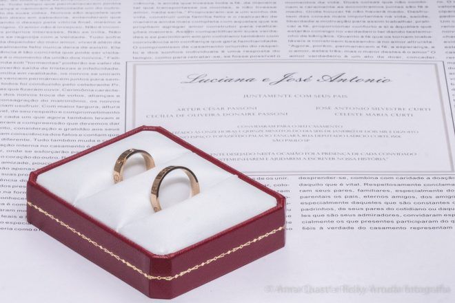Um certo dia o Alexandre, que é médico, me disse que havia ganho um sorteio de um fim de semana no Hotel Hilton em um Congresso do qual ele havia participado. Eu super acreditei e fomos passar um fim de semana lá. O Alexandre passou o dia muito tranquilo e eu nem imaginava nada. Fomos jantar (nessa hora vi que ele estava com a mão gelada e um pouco inquieto, mas eu continuava não imaginando…) e quando voltamos para o quarto, estava todo decorado com rosas, champanhe, doces, roupões personalizados, música ambiente… Ele preparou um vídeo contando nossa história e fazendo declarações, até que, no final, quando virei para trás, ele estava ajoelhado com a caixinha da Tiffany! Detalhe: ele havia pedido minha mão em casamento para o meu pai – que chorou o dia inteiro, de forma que toda a família já estava esperando o pedido e ficaram acordados até de madrugada esperando eu ligar para contar!