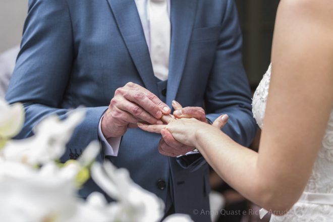 “Nossa cerimônia foi tradicional judaica e o que mais emocionou na cerimônia foi minha entrada, com a música que tanto gostamos. Os celebrantes foram os rabinos Toive e David Weitman (O Toive é super amigo do Alexandre e querido por toda a família – desde o início já desejávamos que fosse ele)