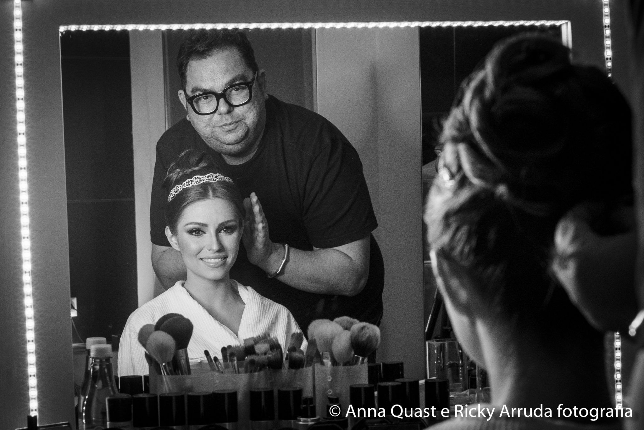 “Bom, como falar sobre o dia mais feliz da minha vida? No começo achei que conseguiria dar conta de tudo, mas aceitem que isso é praticamente impossível, rs!! Quando descobri que a Maíra, super amiga minha, estava trabalhando na Marriages Assessoria já tive certeza de quem ficaria responsável por me aturar nos próximos meses, e foi então que eu comecei a ver todas as coisas do casamento junto com a Má, sendo que 3 fornecedores eu já tinha 100% de CERTEZA que tinham que estar no meu grande dia: Anna Quast e Ricky Arruda (Fotos), Vinícius Credidio (Filmagem) e Junior Mendes (Make).