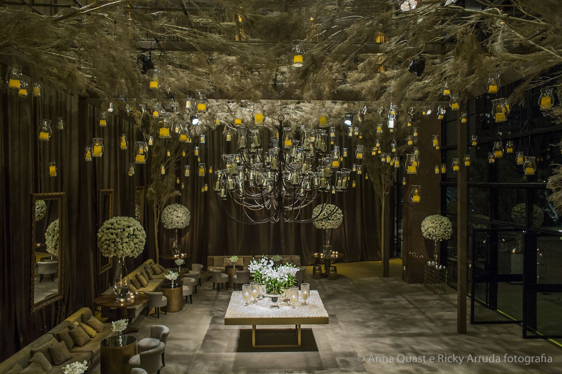 A decoração da festa ficou um sonho. Paula conta que a ideia da decoração da cerimônia foi baseada no conceito das palavras chaves e da arte da natureza, ou seja, a natureza bonita como ela já é. O caminho da nave, até chegar ao altar era de vegetação e flores plantadas, irregulares, nada montado certinho, como se fosse um jardim silvestre. As cadeiras eram diferentes, trazendo essa ideia de aconchego, como se os noivos estivessem recebendo no jardim de casa.