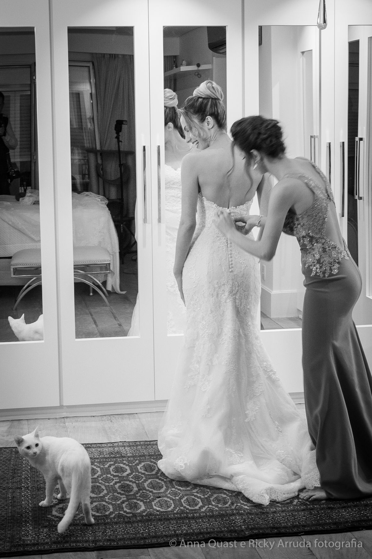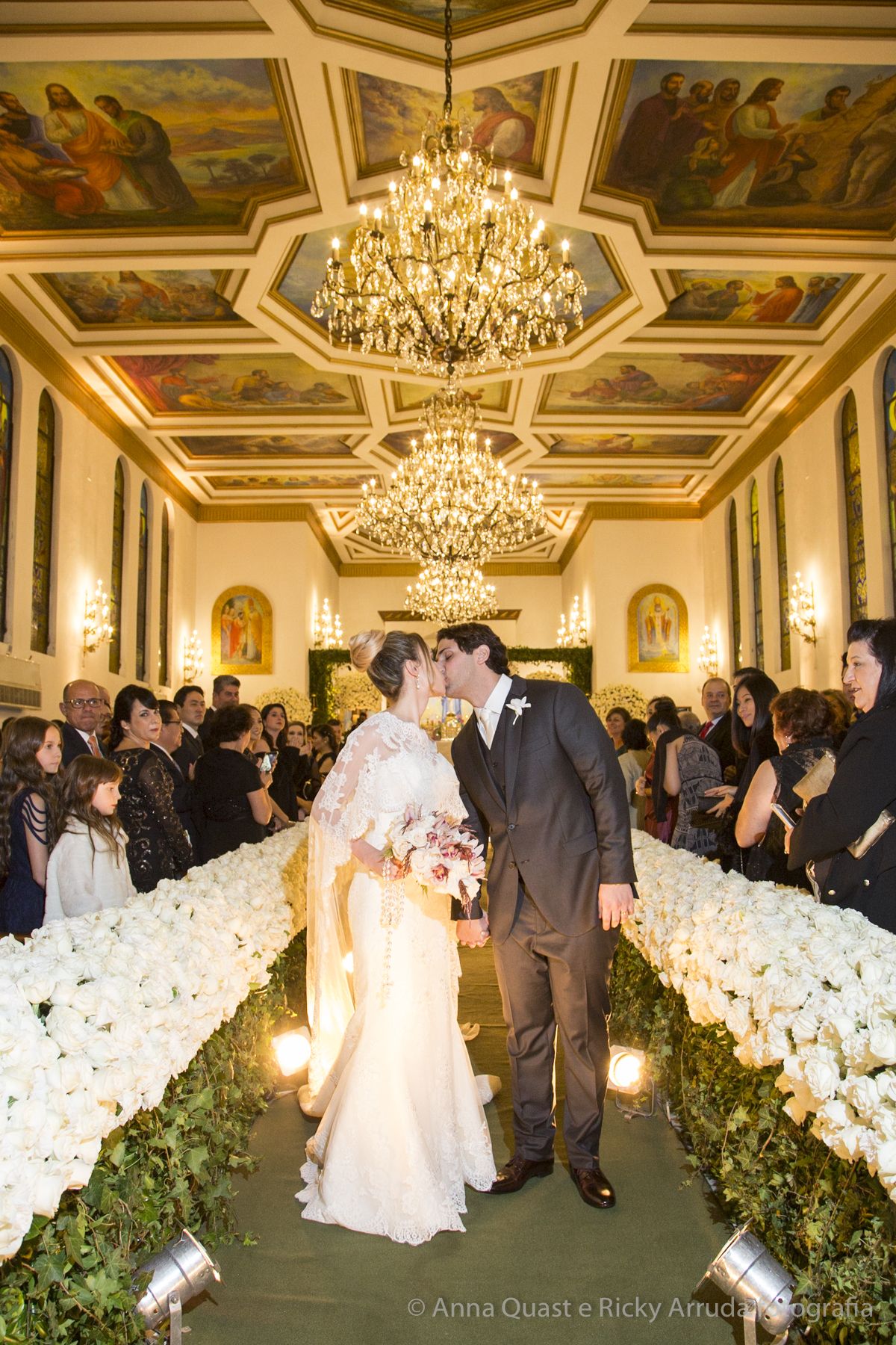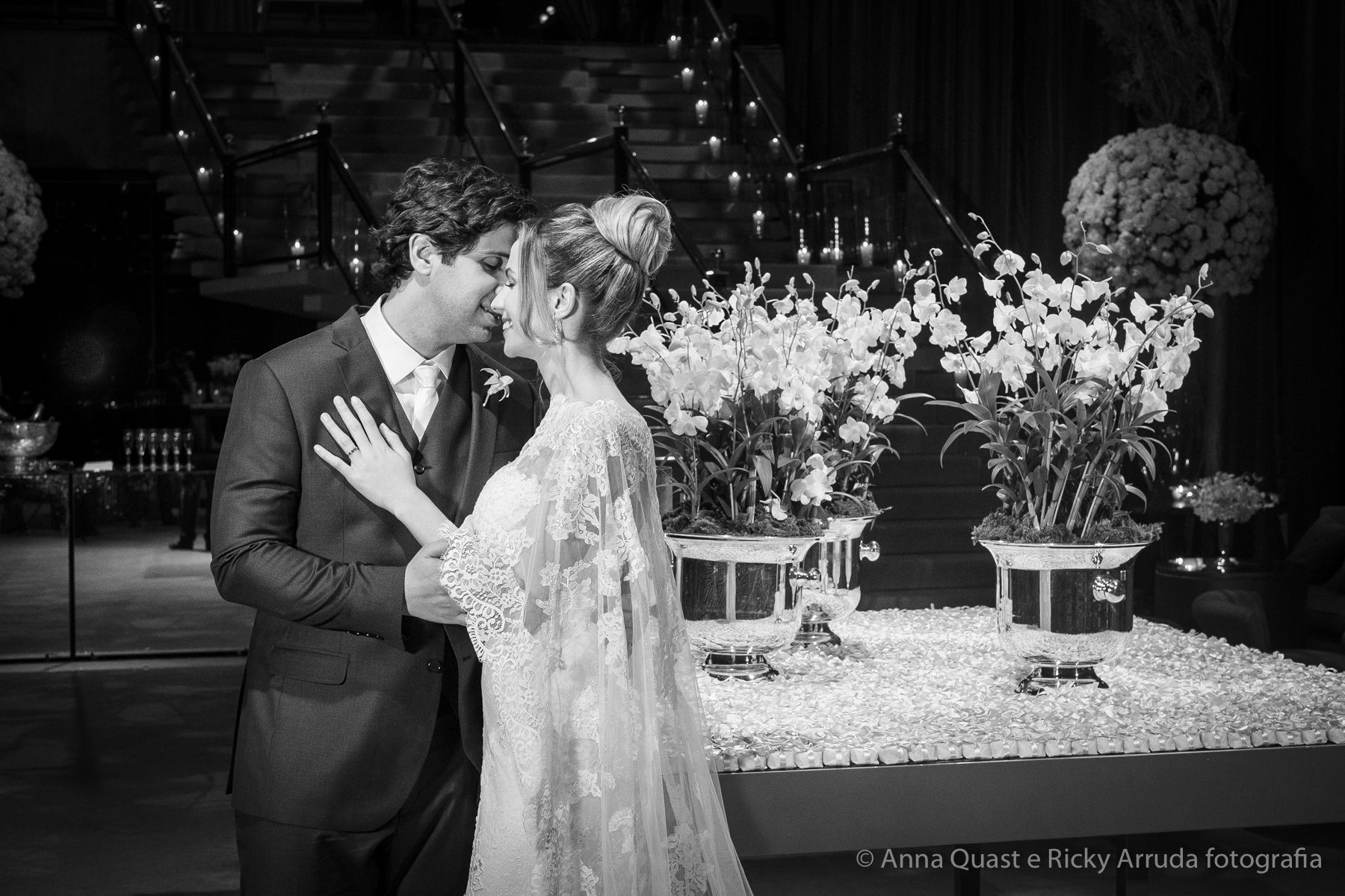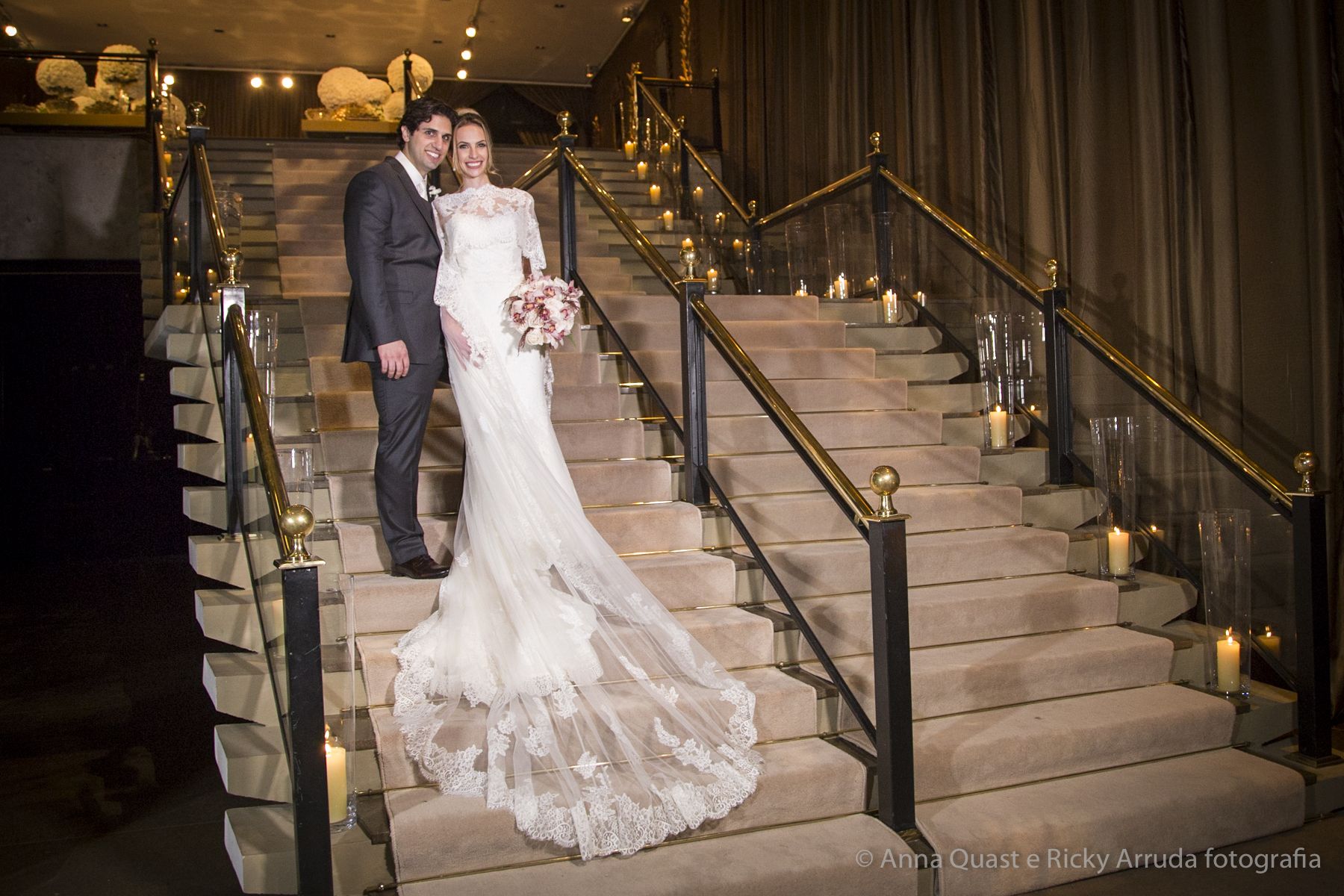 O vestido da noiva, criado pela estilista e consultora de estilo Lolô Ascar, foi desenhado e produzido exclusivamente para a Juliana.