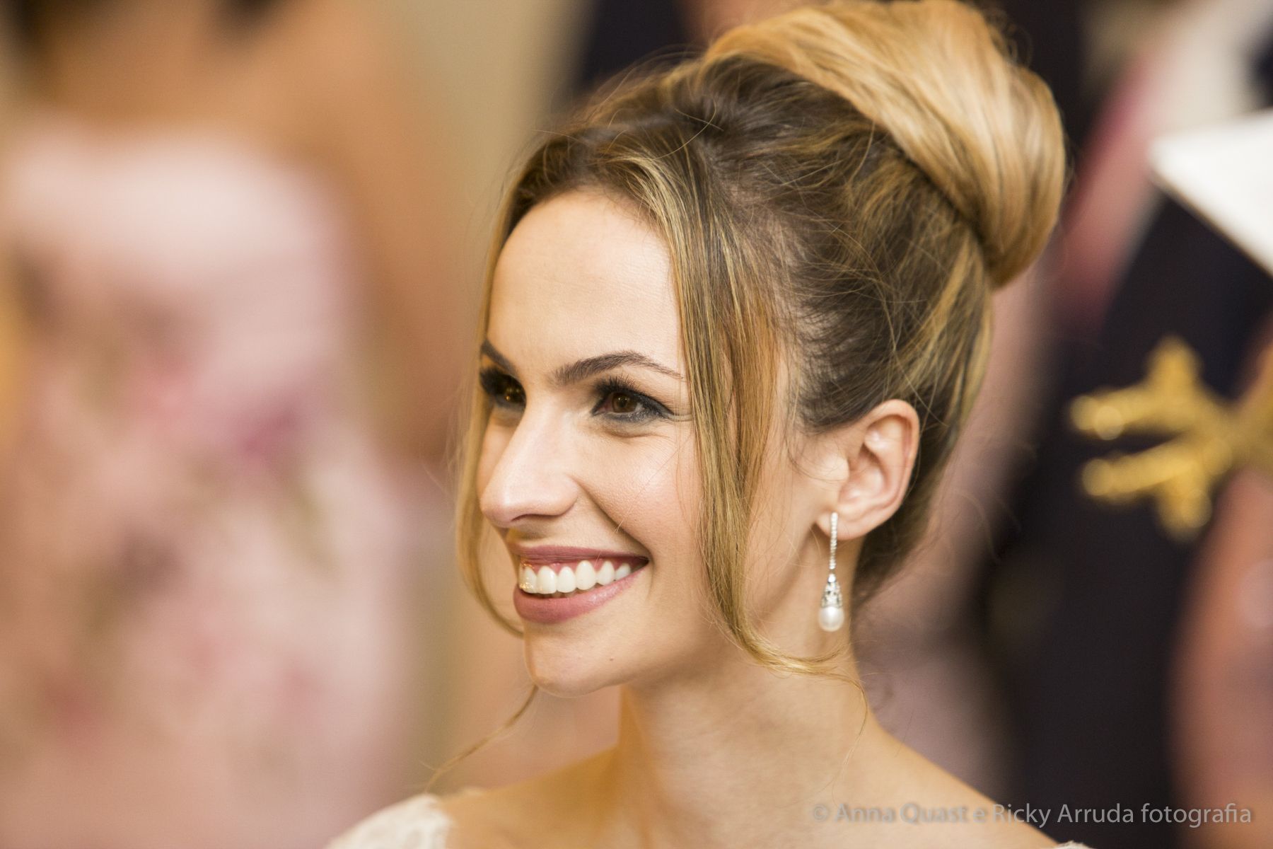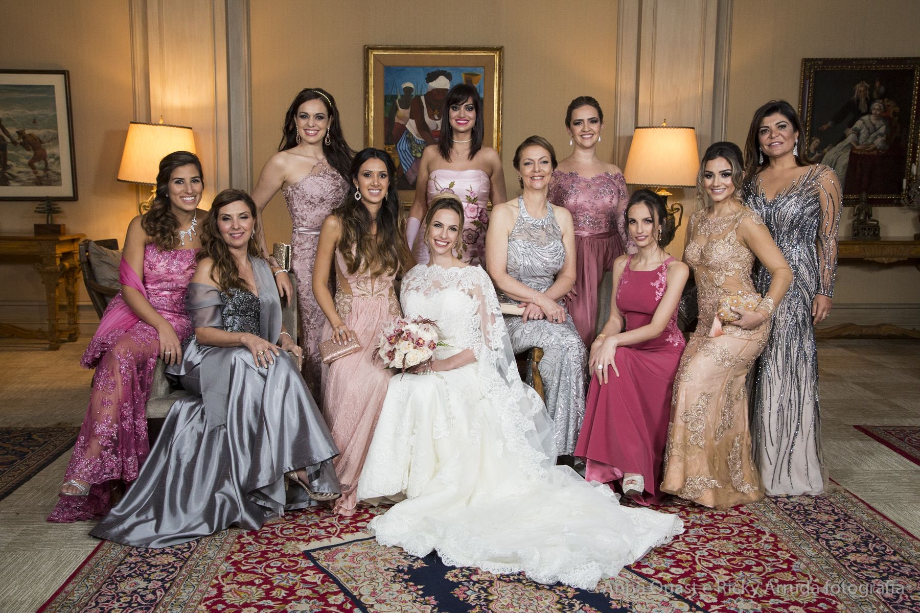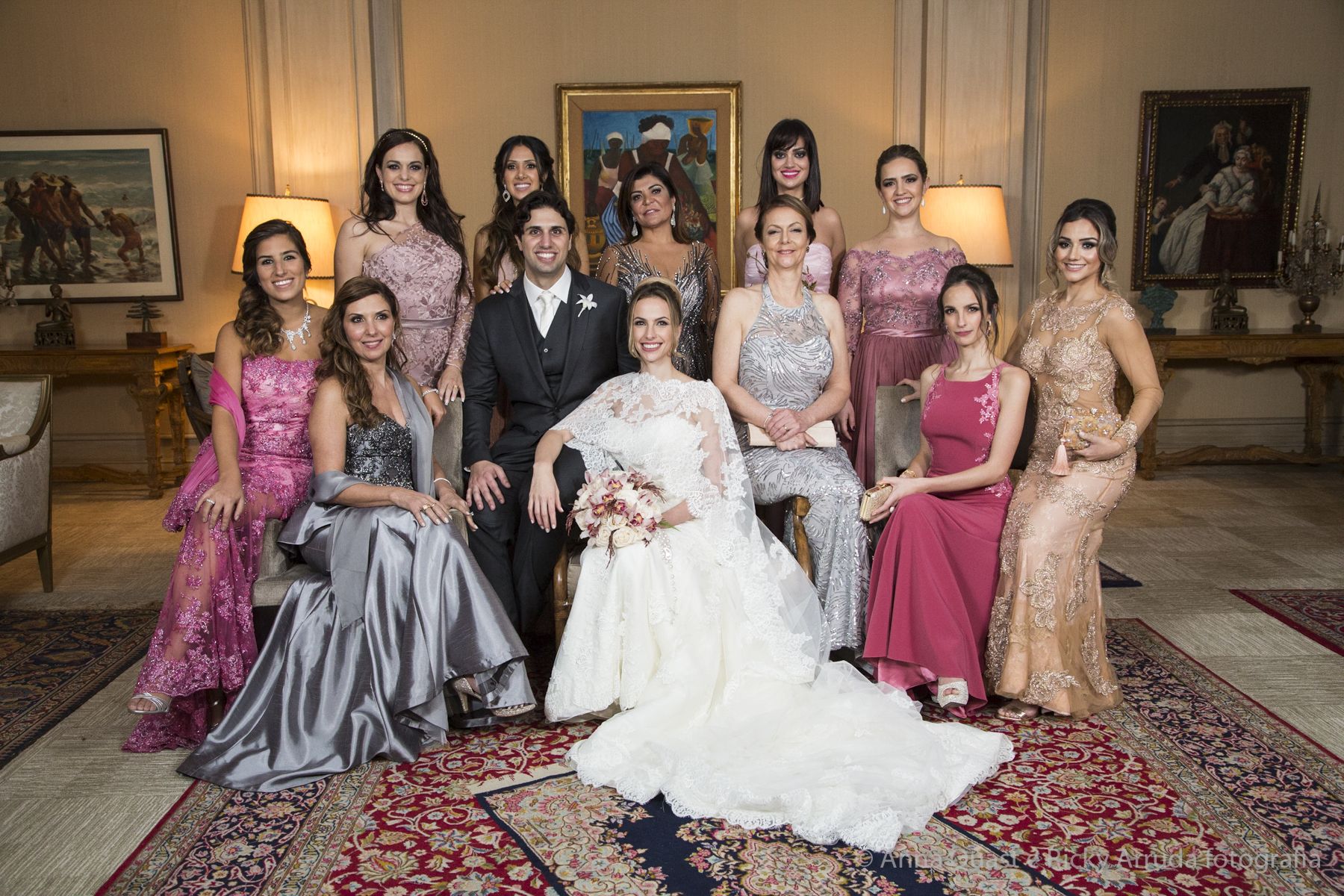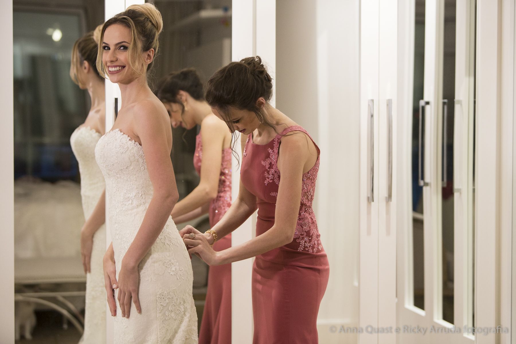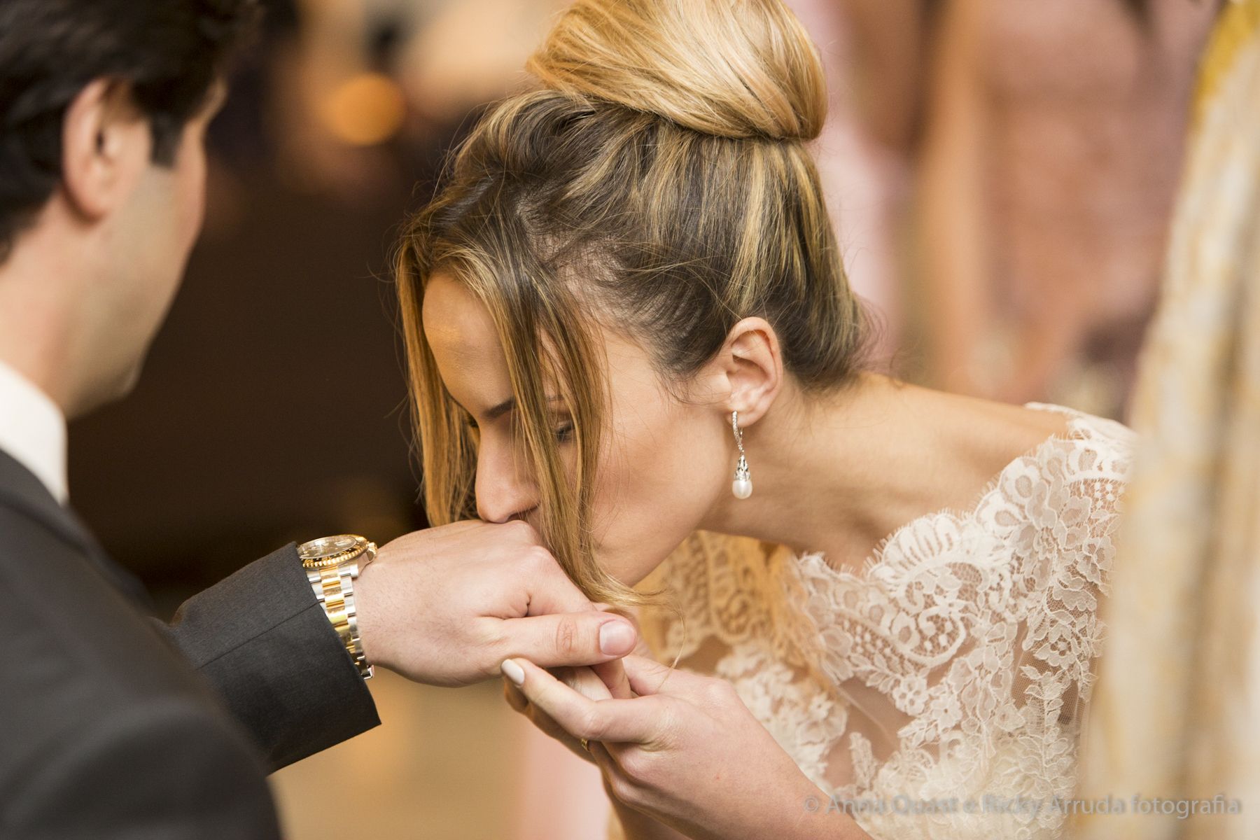 O vestido da noiva, criado pela estilista e consultora de estilo Lolô Ascar, foi desenhado e produzido exclusivamente para a Juliana.