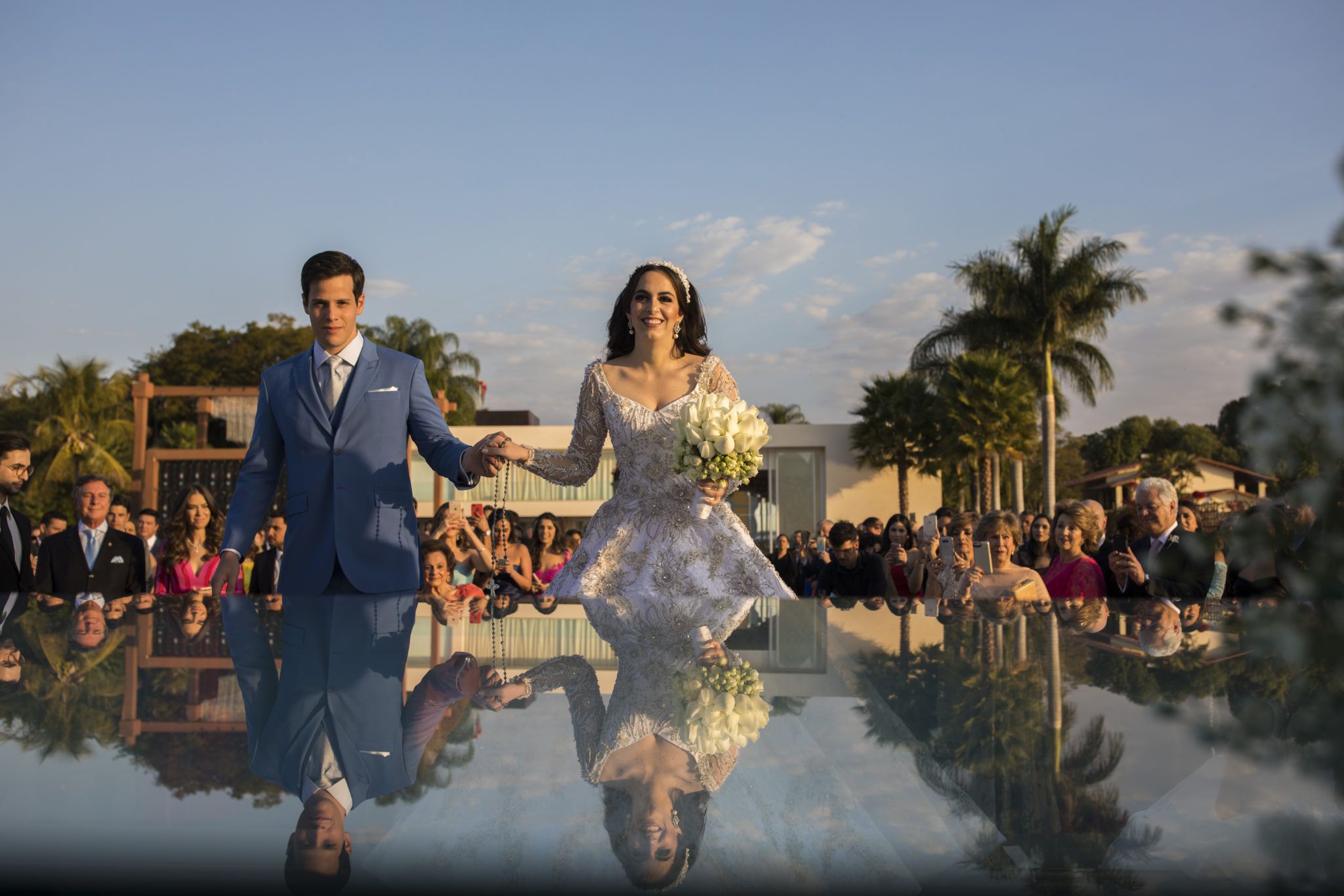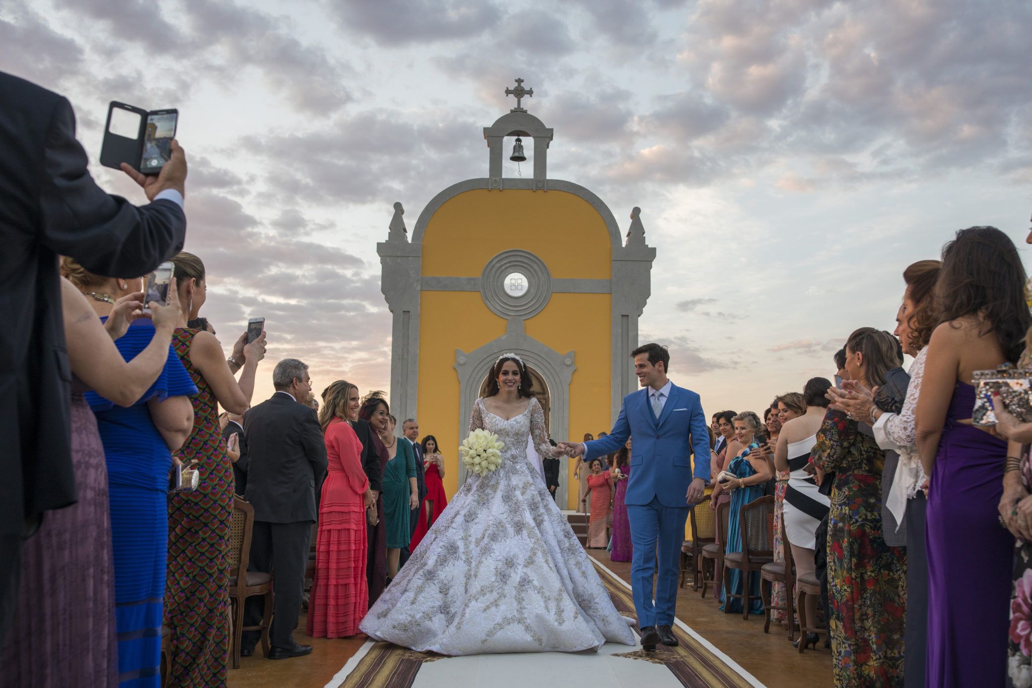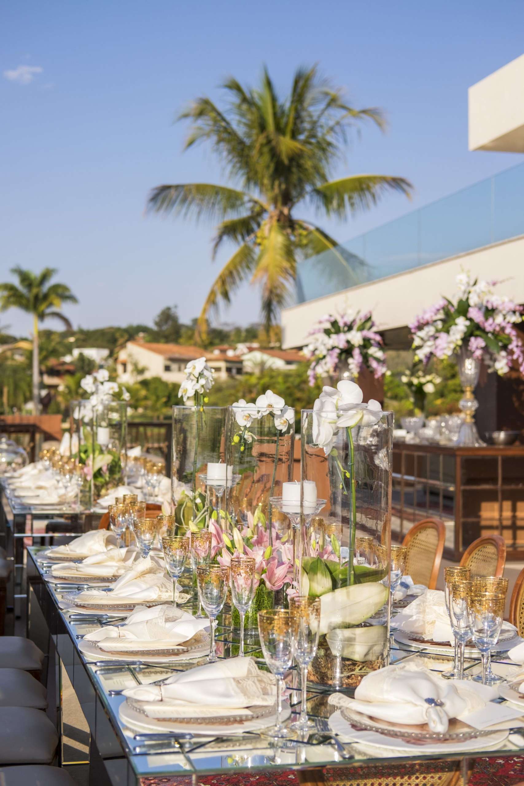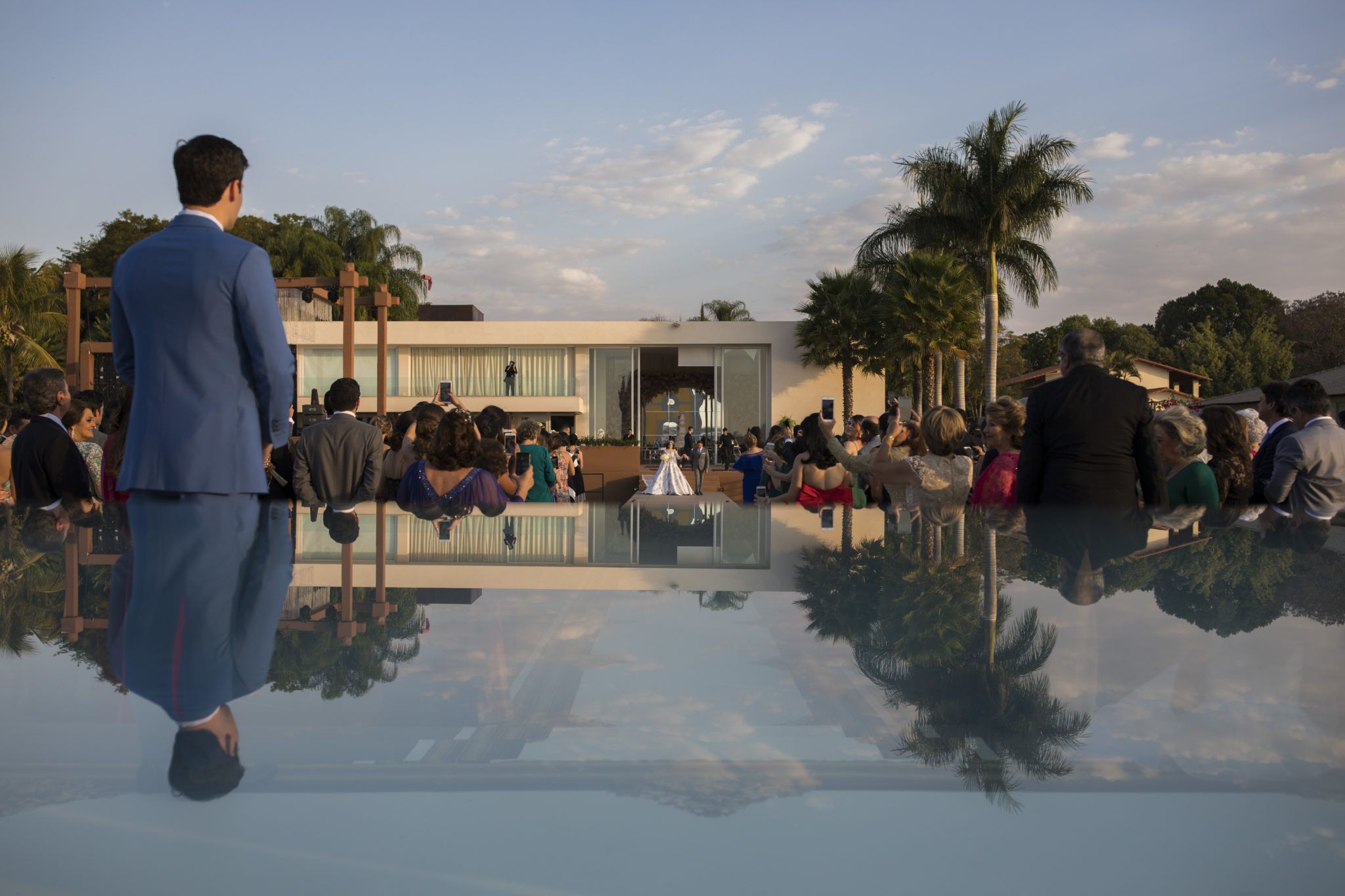 Como nossa festa seria fora de São Paulo, mais ou menos um mês antes nós realizamos o casamento religioso e civil em São Paulo, e minha mãe teve alta do hospital bem na véspera. Foi uma cerimônia extremamente emocionante, para apenas 40 pessoas em uma capela, seguida do casamento civil na casa dos meus pais. Foi inesquecível, extremamente especial.
