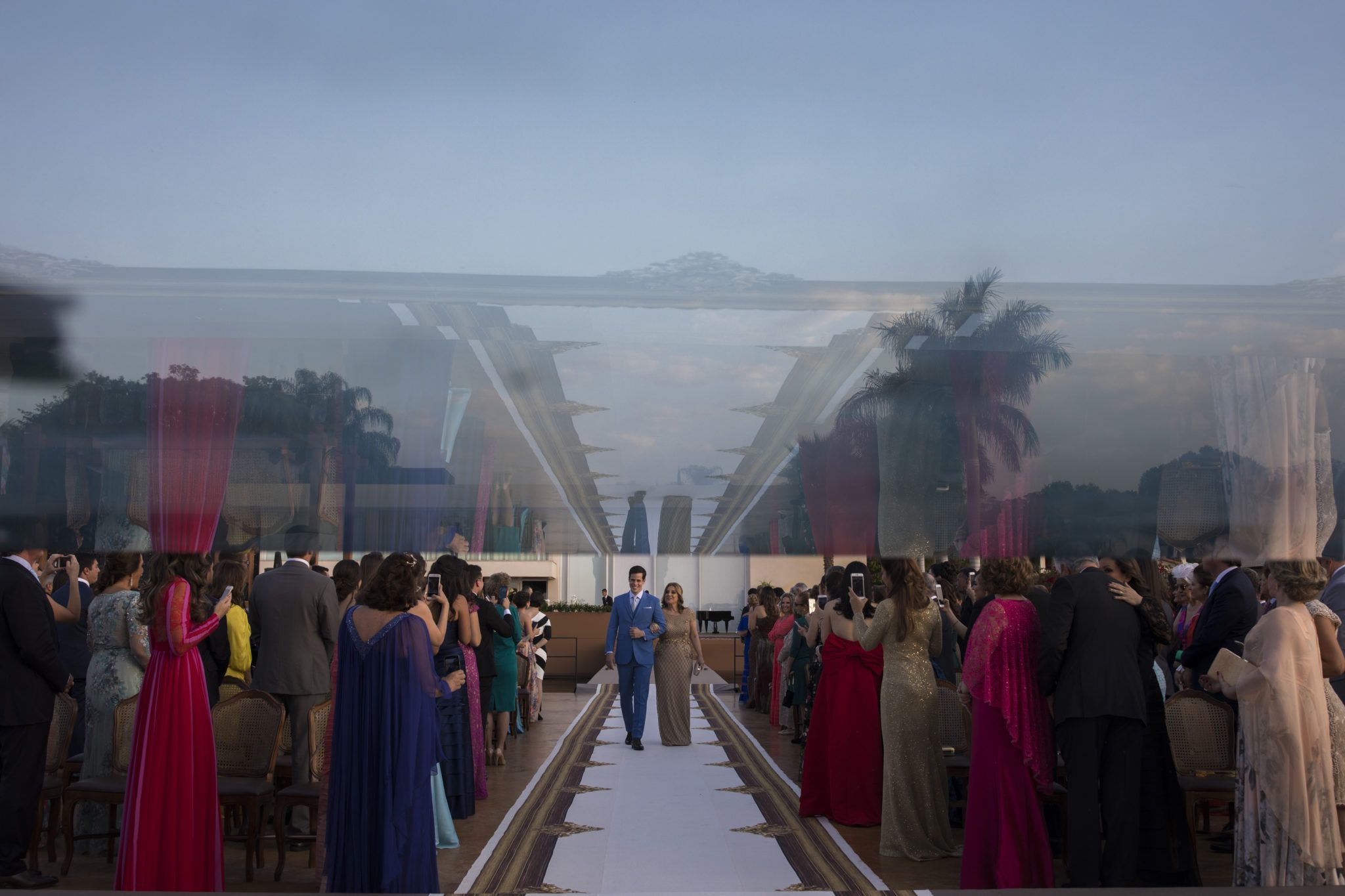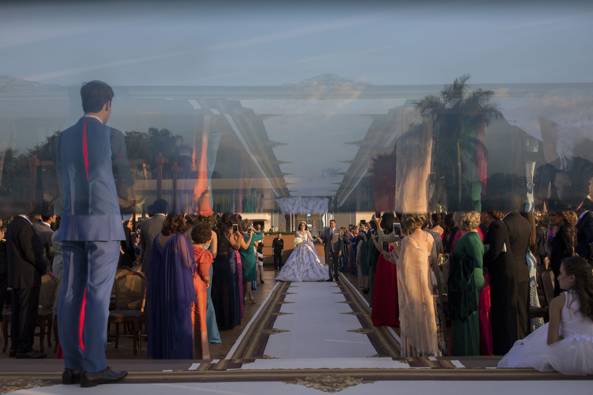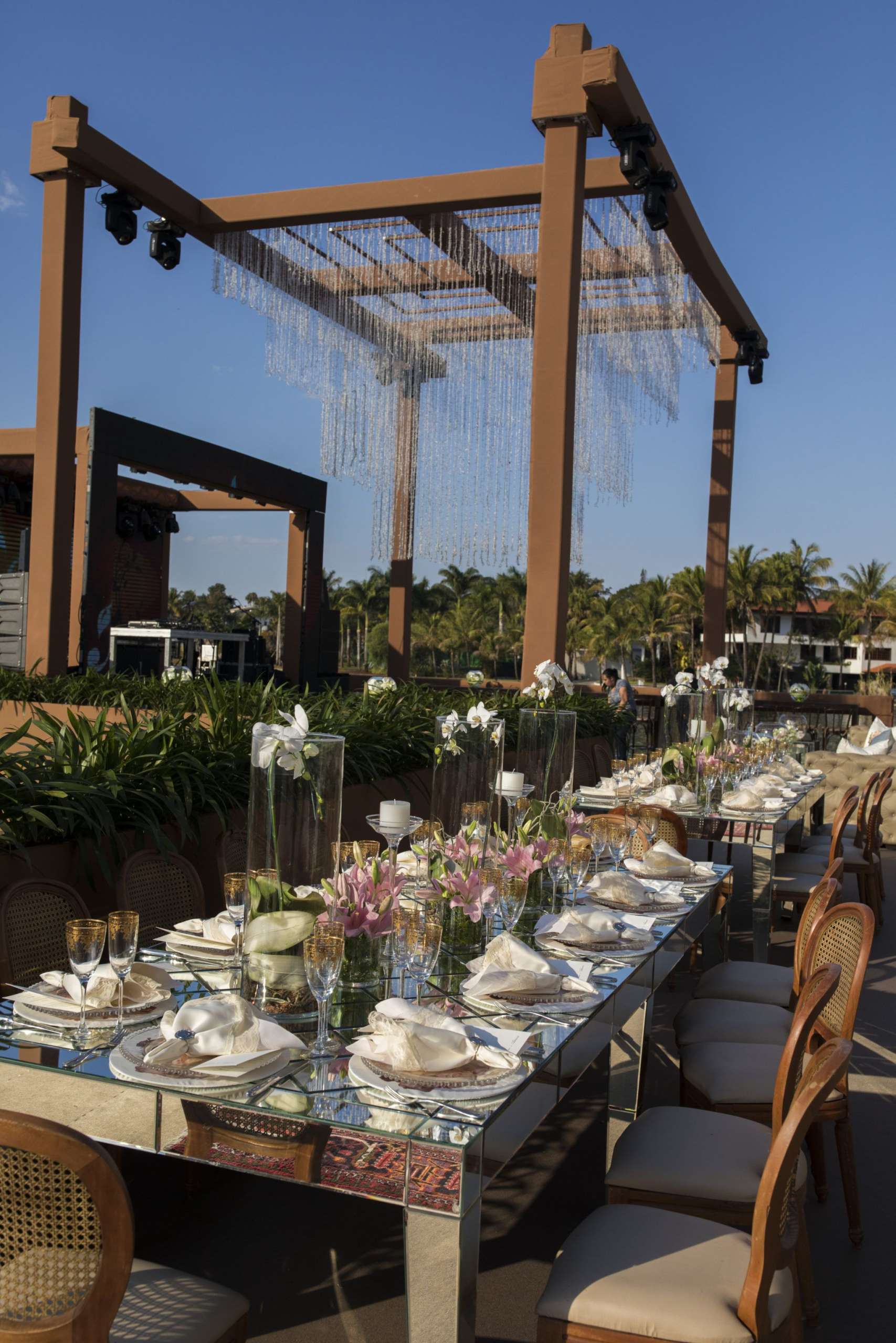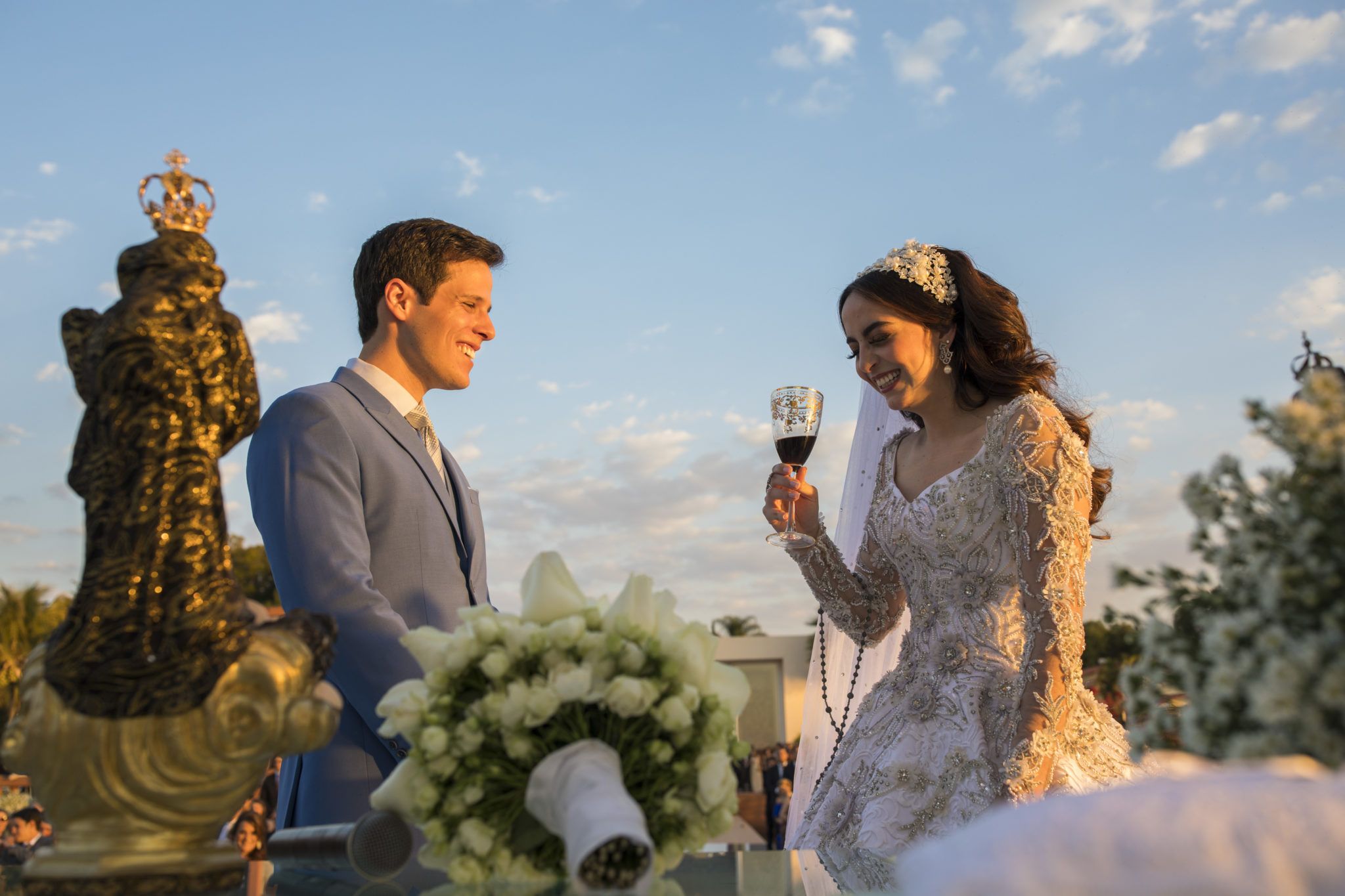 Como nossa festa seria fora de São Paulo, mais ou menos um mês antes nós realizamos o casamento religioso e civil em São Paulo, e minha mãe teve alta do hospital bem na véspera. Foi uma cerimônia extremamente emocionante, para apenas 40 pessoas em uma capela, seguida do casamento civil na casa dos meus pais. Foi inesquecível, extremamente especial.