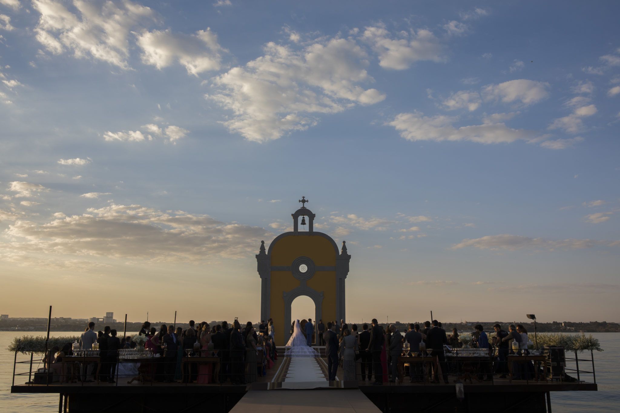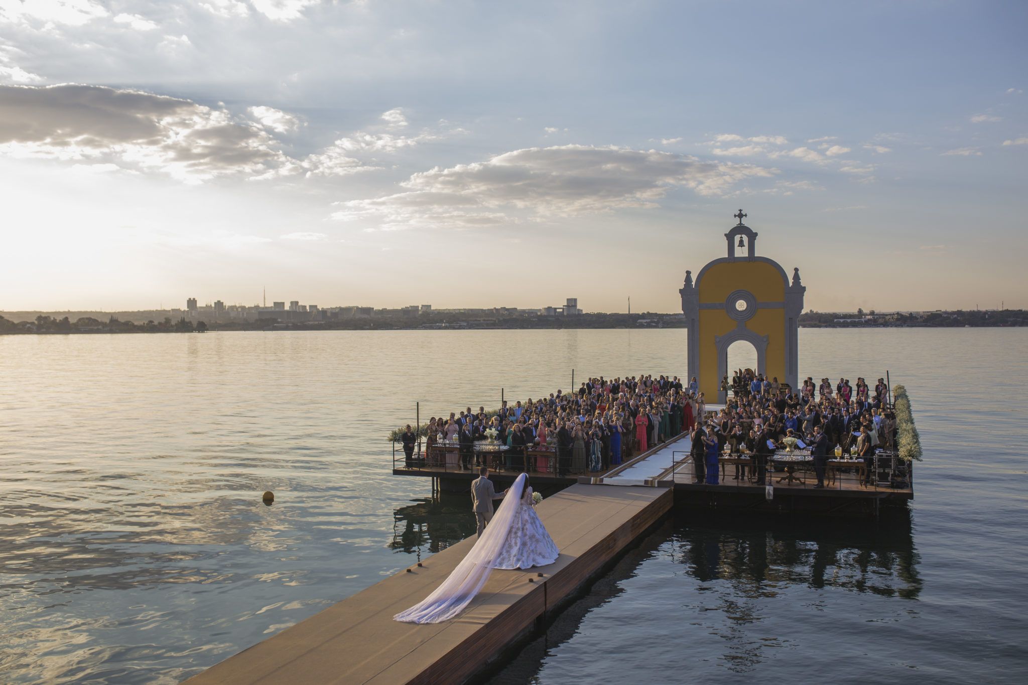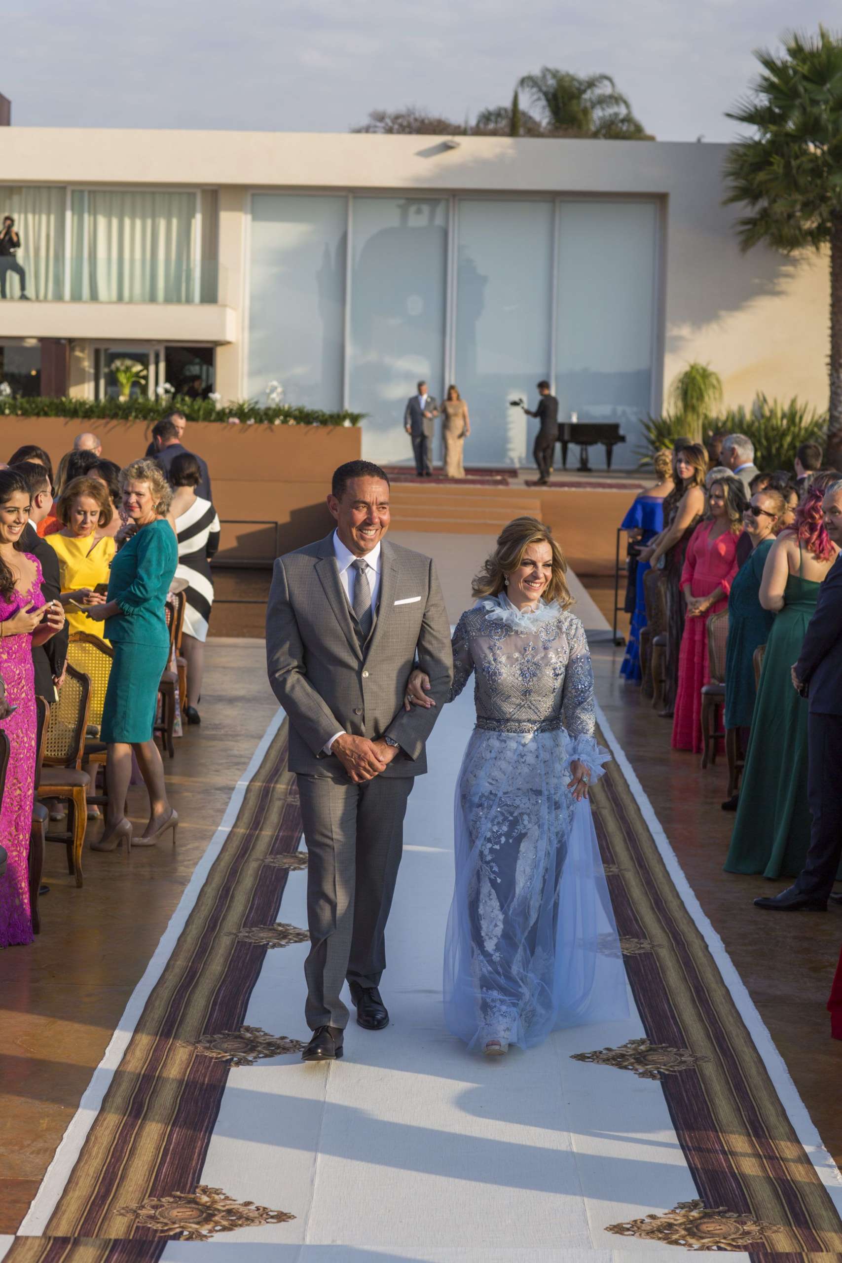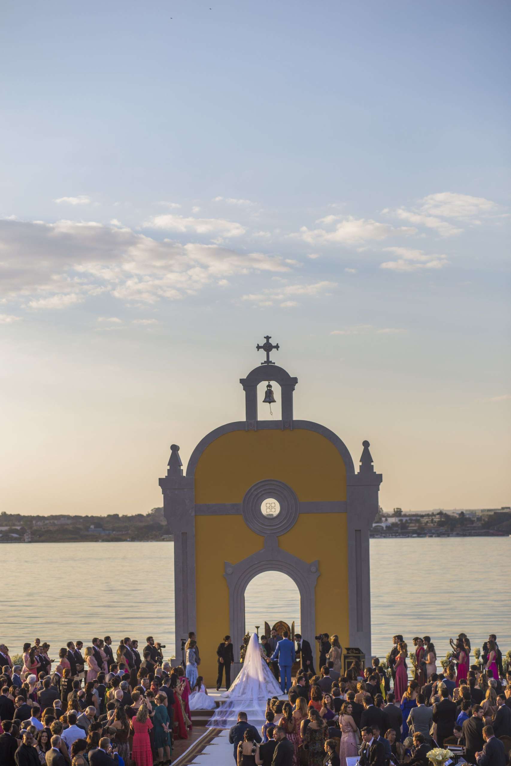 Como nossa festa seria fora de São Paulo, mais ou menos um mês antes nós realizamos o casamento religioso e civil em São Paulo, e minha mãe teve alta do hospital bem na véspera. Foi uma cerimônia extremamente emocionante, para apenas 40 pessoas em uma capela, seguida do casamento civil na casa dos meus pais. Foi inesquecível, extremamente especial.
