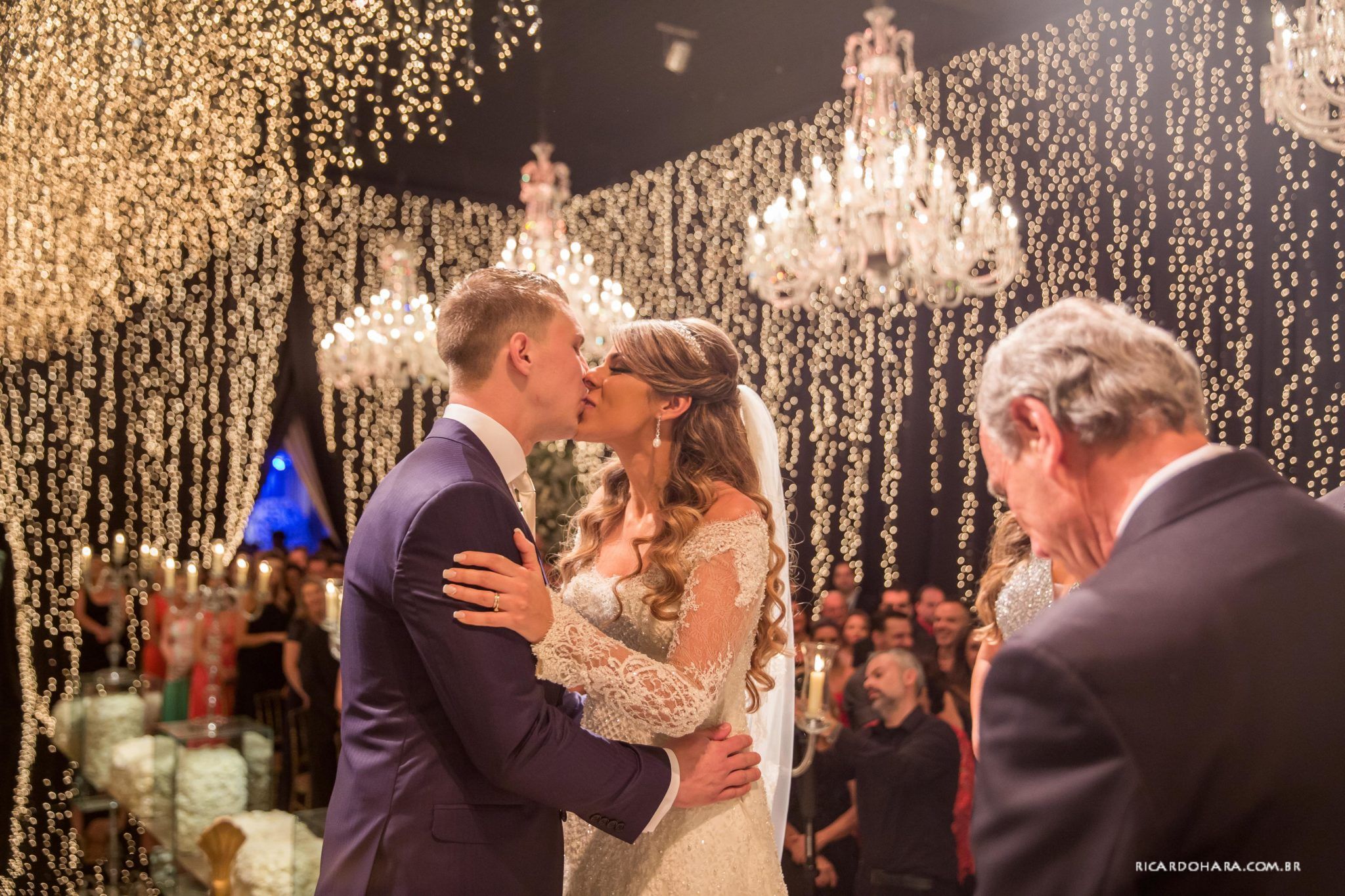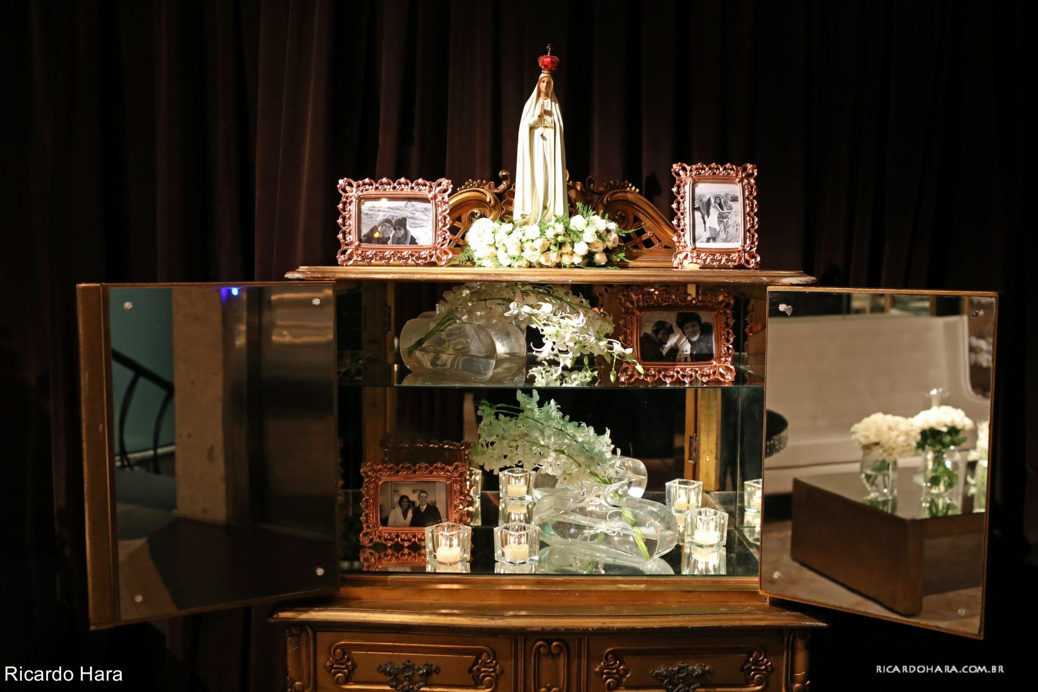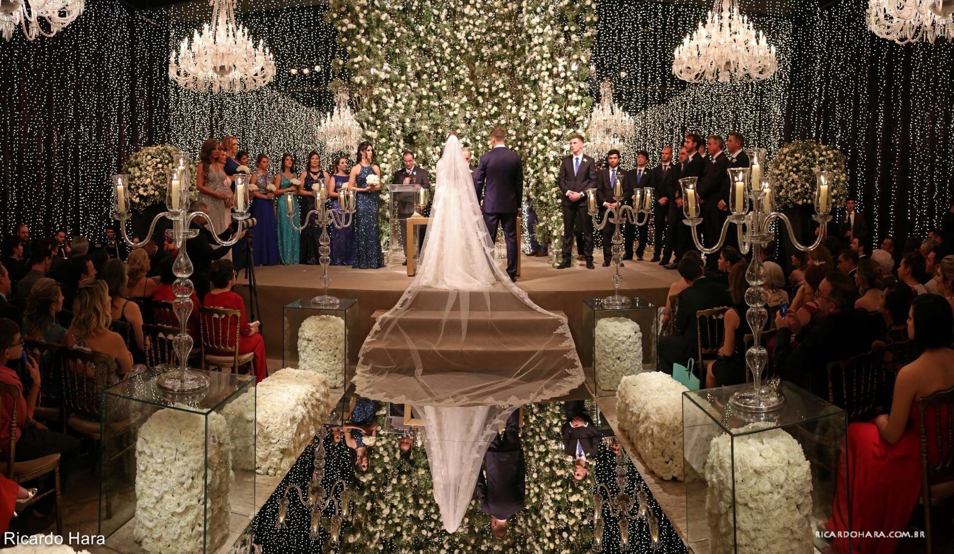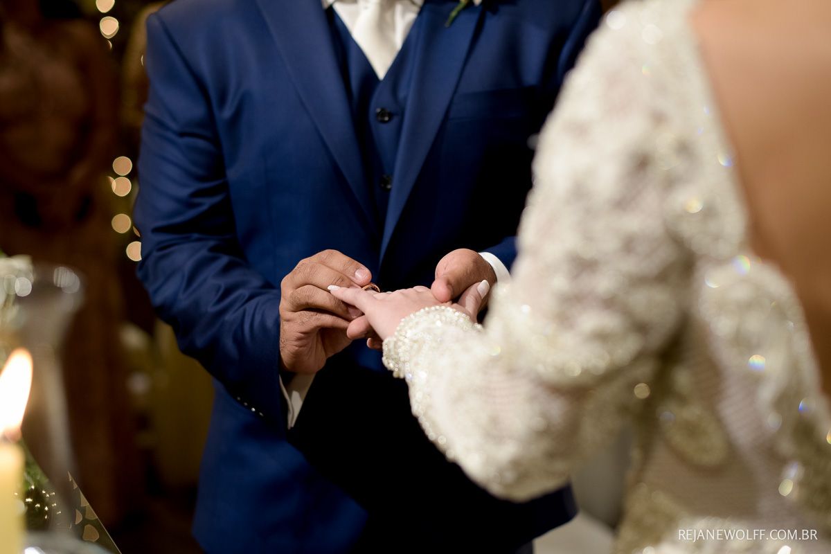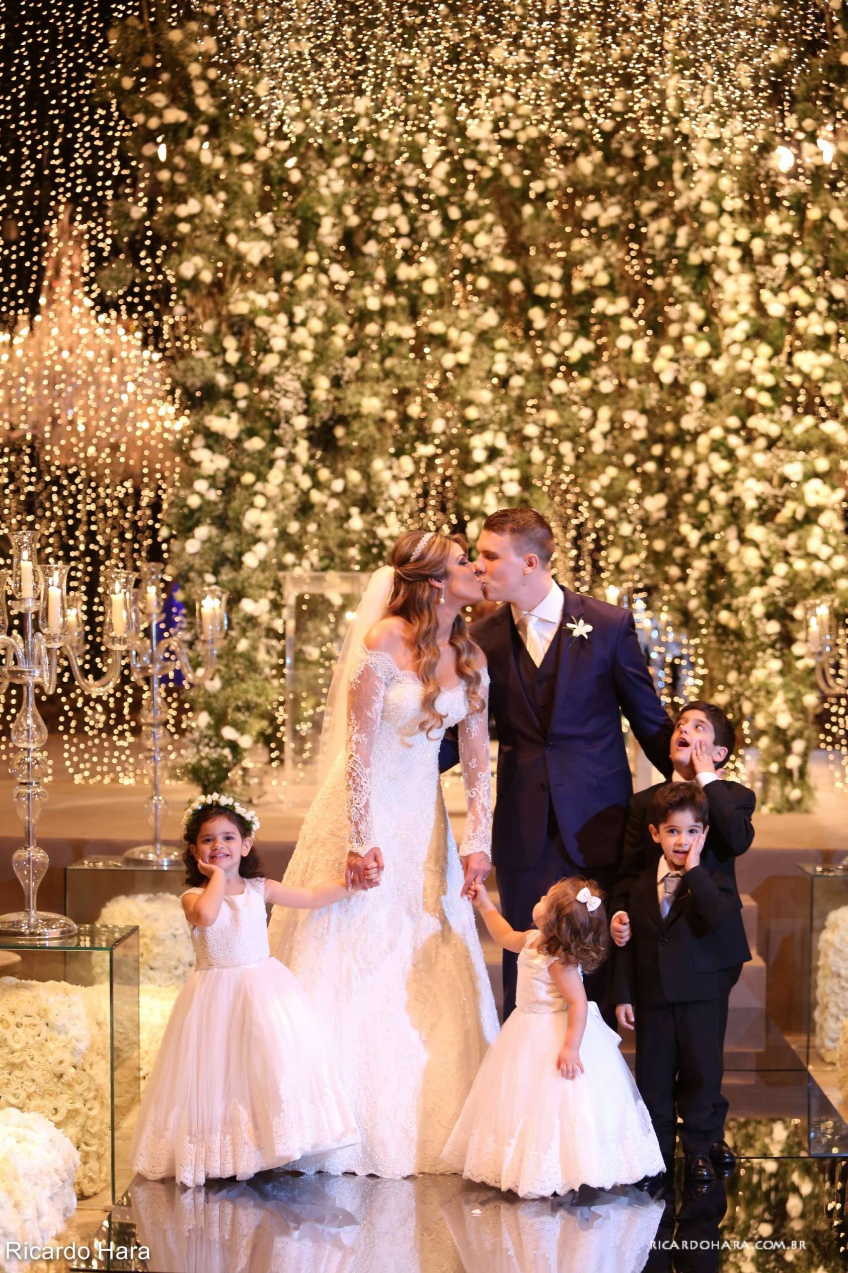 Lá todos os pratos são servidos à francesa e chegou a sobremesa numa baixela linda! Quando abriram, tinha um sapatinho de cristal, com pétalas de rosa em volta e ele com o braço esticado segurando a caixinha e disse ” Pequena, você aceita casar comigo”