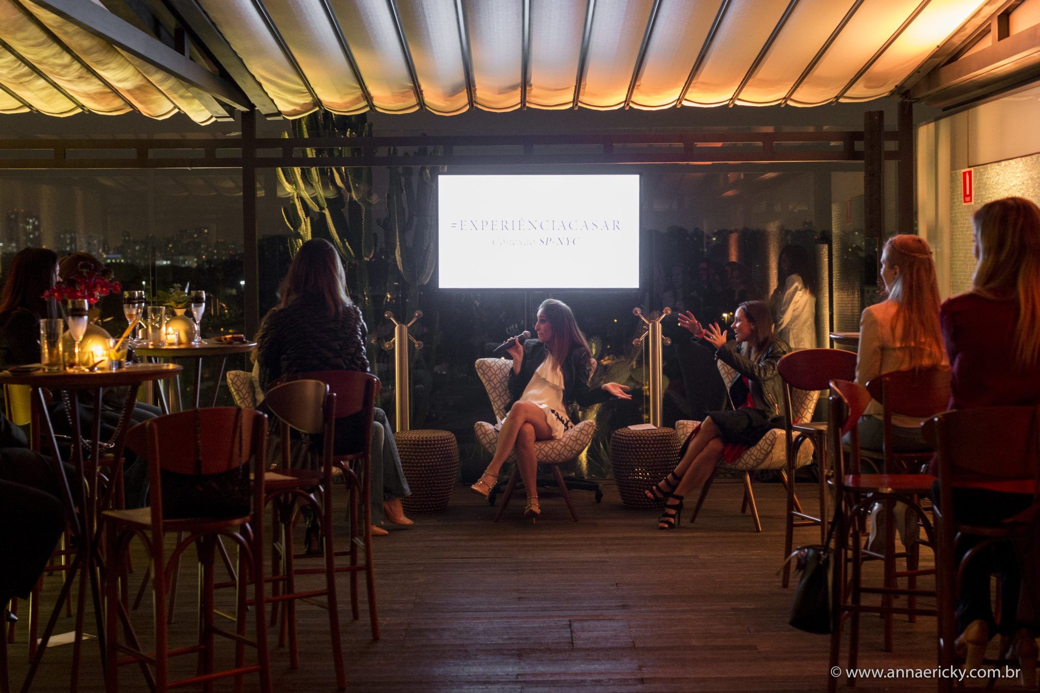O encontrinho, chamado de #EXPERIÊNCIACASAR – Conexão SP-NYC, teve mediação minha e serviu para as meninas contarem um pouco da experiência que elas tiveram com os vestidos de noiva em Nova York. A Fe faz consultoria de compras para noivas brasileiras que desejam encontrar modelo do grande dia na Big Apple, e a Camila Chain passou uns dias lá com ela para conhecer de perto as novidades dos estilistas mais badalados que têm lojas em Nova York.