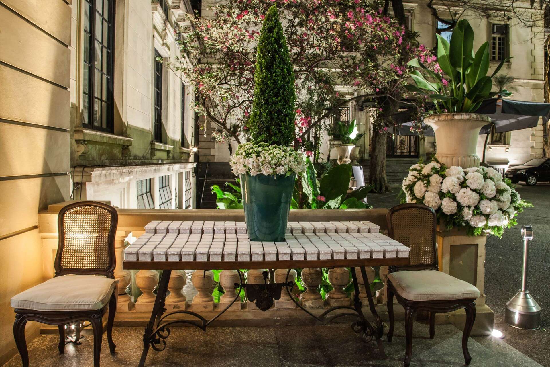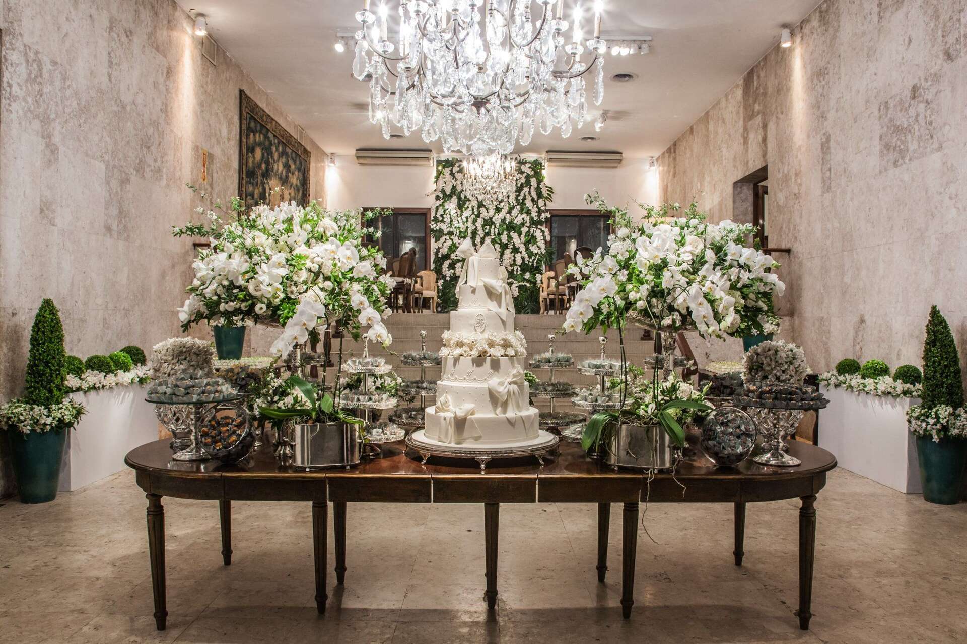 Foi a própria noiva, que é arquiteta, que projetou a própria decoração da festa.