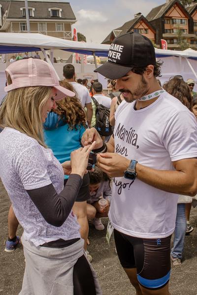 Assim que ele pegou a medalha, veio nos encontrar e oficializou o pedido com o anel e uma camiseta para mim que dizia ‘Sim, eu aceito!’ Cada detalhe foi pensado com muito amor para que realmente tocasse fundo na emoção, e tocou! Só nós sabemos o que é treinar e se preparar para uma prova como essa, e só nós sabemos o que é estar lá para torcer por alguém que amamos tanto. Foi um momento incrível, a emoção nos arrepiou do inicio ao fim da prova e o choro que estava preso na garganta desde a largada, foi inevitável com uma chegada como essa”, finalizou.”