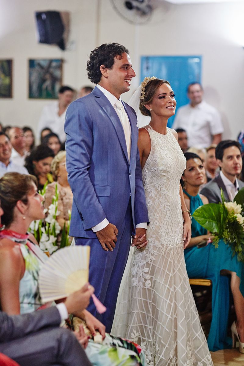 Meu vestido foi feito pela super querida Luciana Collet, exatamente do jeitinho que eu queria. Fiquei linda, exuberante e feliz com ele. Meu assessor foi o Miguel Kanashiro, que é amigo da família. Tão amigo que, além de assessor, foi meu padrinho e estava no altar me abençoando.