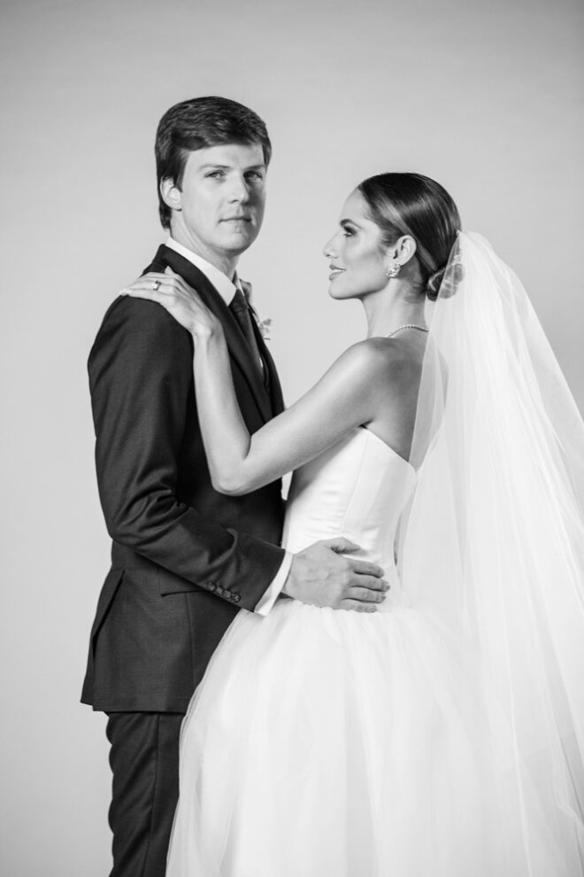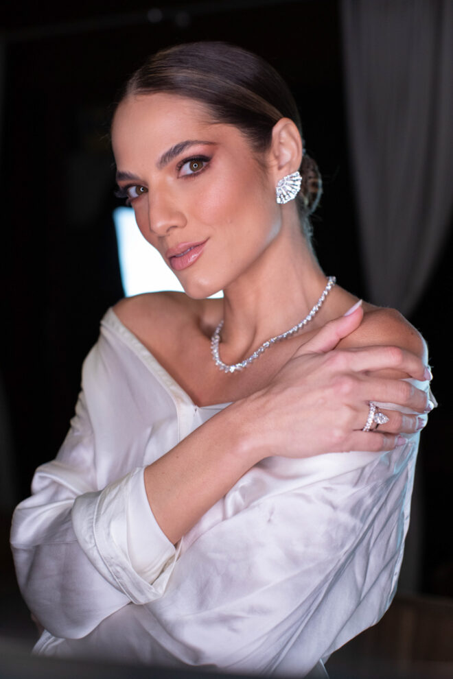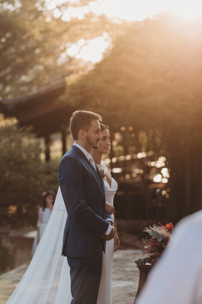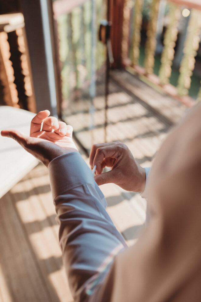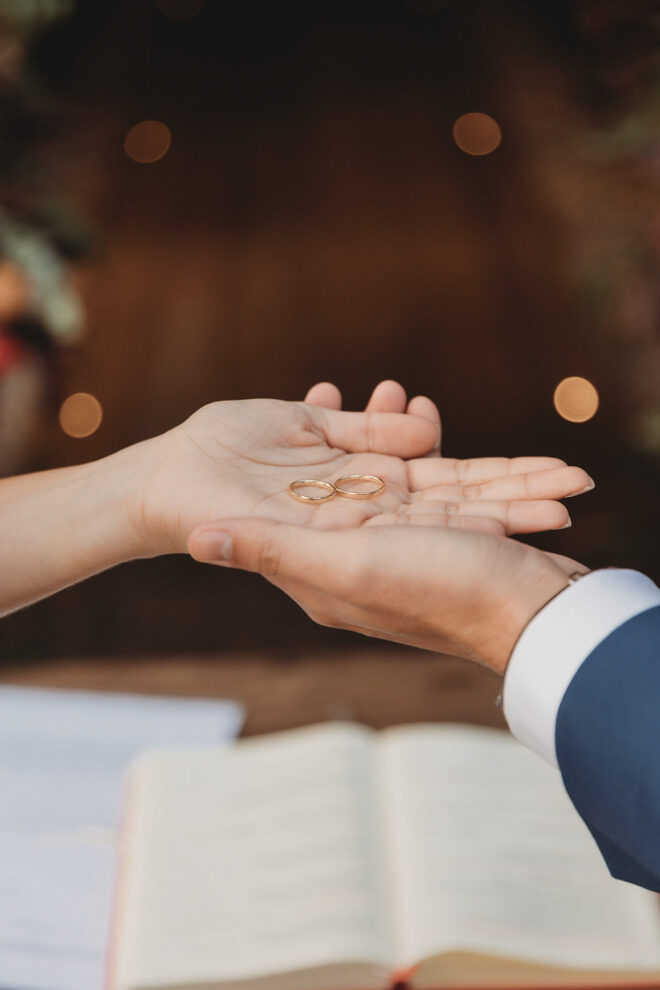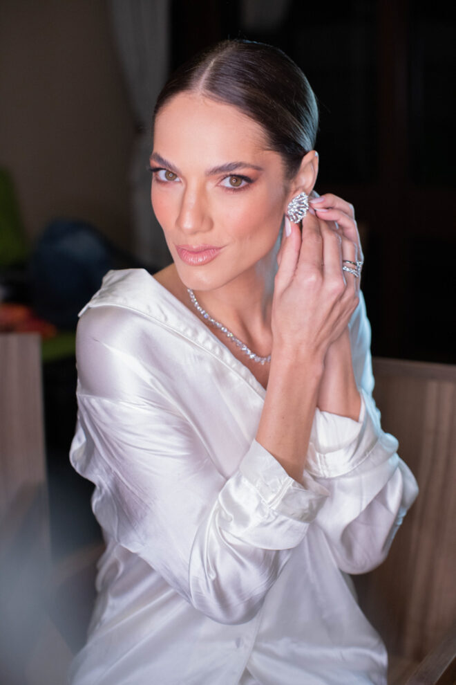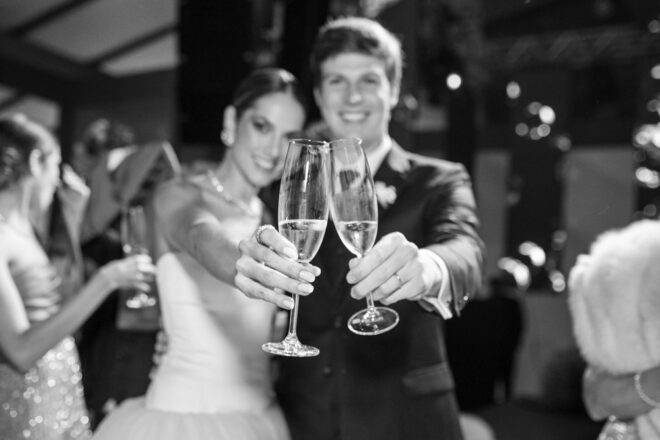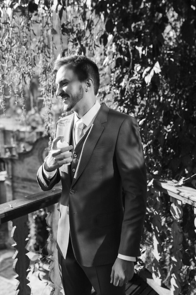 Nós nos conhecemos desde os 15 anos, o Kim foi meu primeiro namorado. Acabamos nos separando por 8 anos, mas o destino nos juntou de novo. Namoramos por 5 anos e o pedido de casamento foi feito em Zermatt em cima de uma montanha, no lugar que a gente mais ama, com neve, frio… e o casamento tão sonhado veio depois de tantas remarcações pela pandemia. Iamos casar no dia dos namorados ano passado, e este ano então decidimos manter a data e casar 11 junho, véspera do dia dos namorados, pois amamos frio e queríamos bem no inverno.