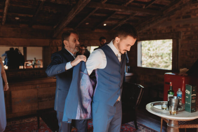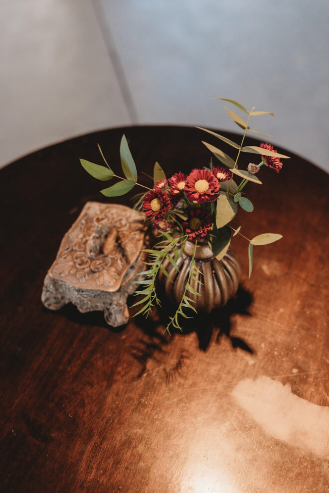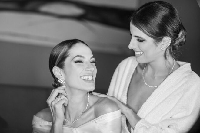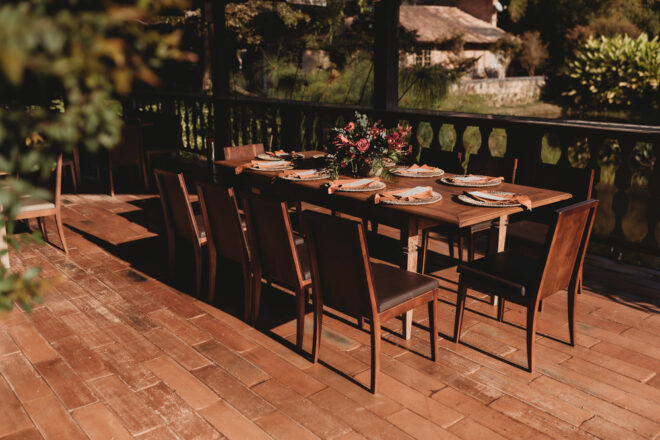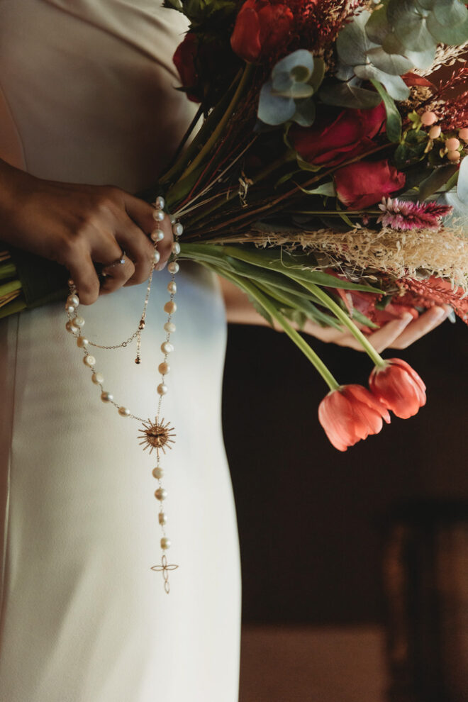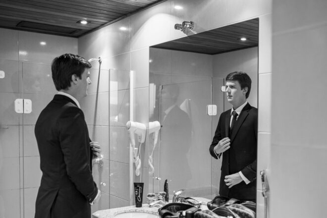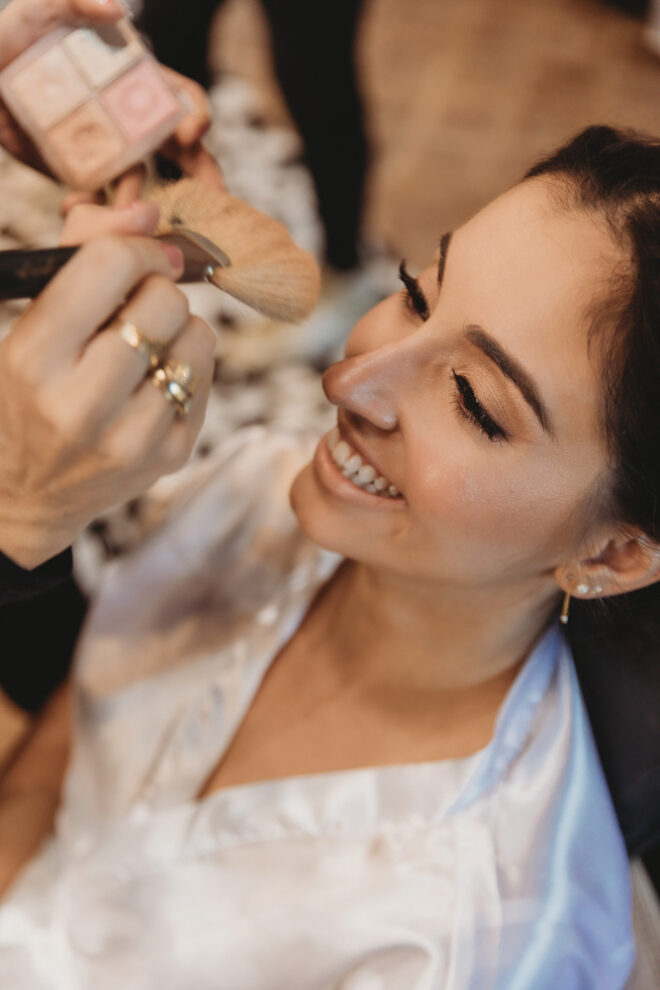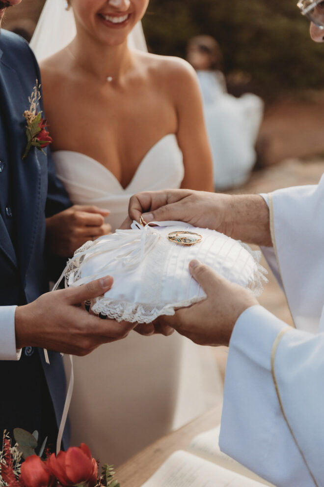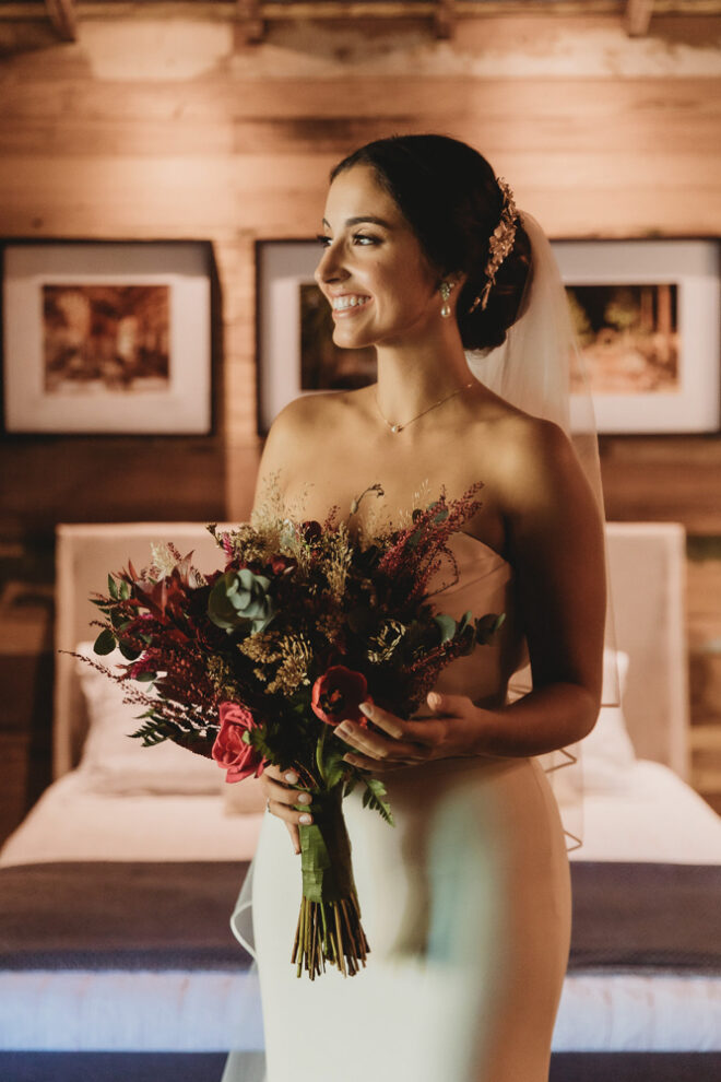 Nós nos conhecemos desde os 15 anos, o Kim foi meu primeiro namorado. Acabamos nos separando por 8 anos, mas o destino nos juntou de novo. Namoramos por 5 anos e o pedido de casamento foi feito em Zermatt em cima de uma montanha, no lugar que a gente mais ama, com neve, frio… e o casamento tão sonhado veio depois de tantas remarcações pela pandemia. Iamos casar no dia dos namorados ano passado, e este ano então decidimos manter a data e casar 11 junho, véspera do dia dos namorados, pois amamos frio e queríamos bem no inverno.