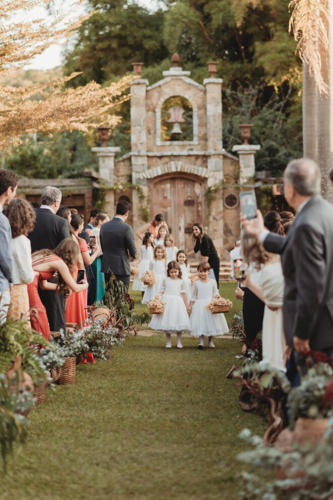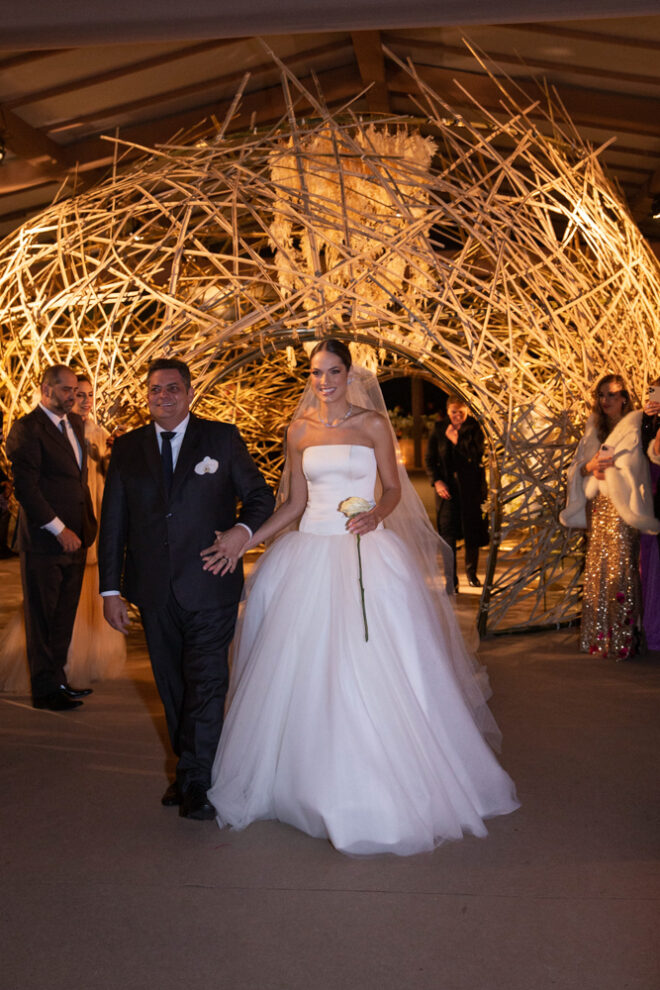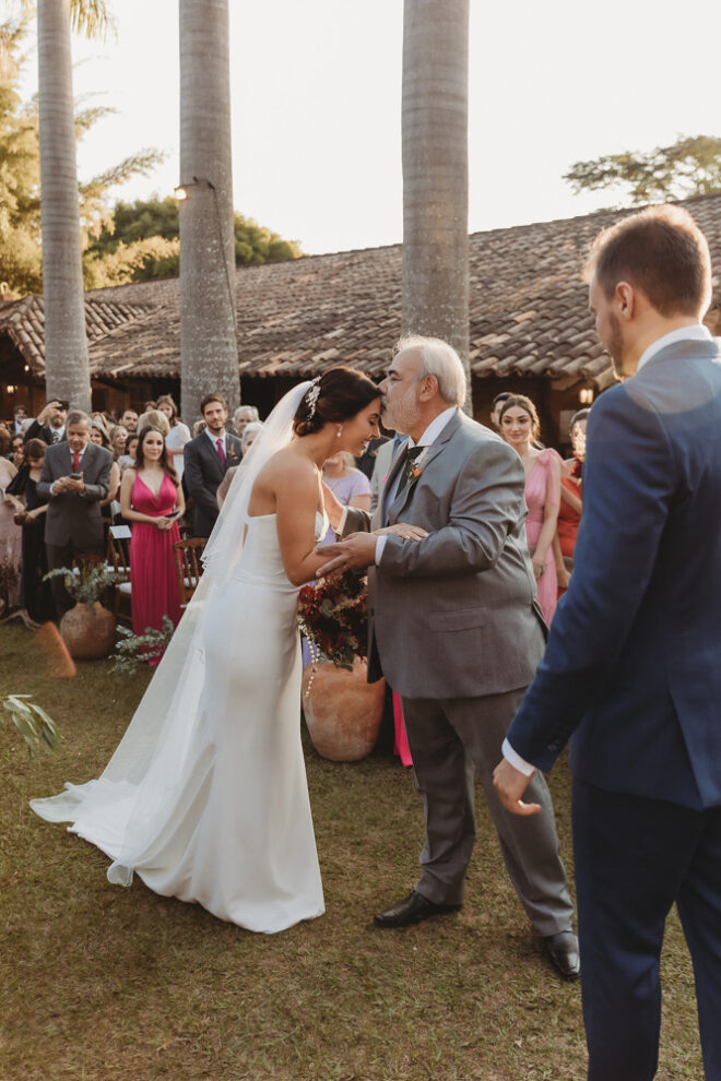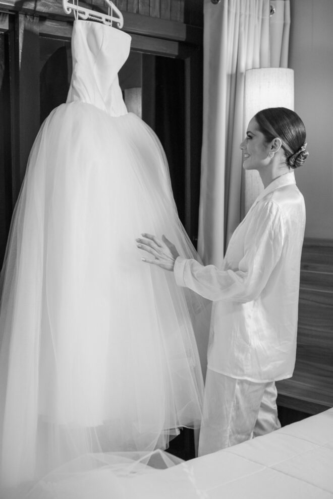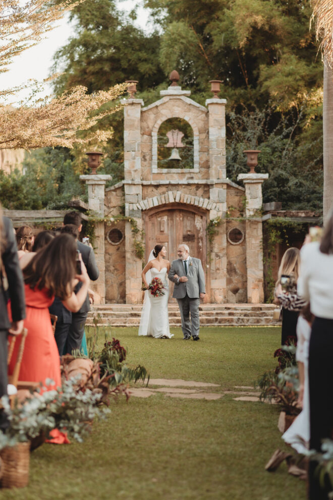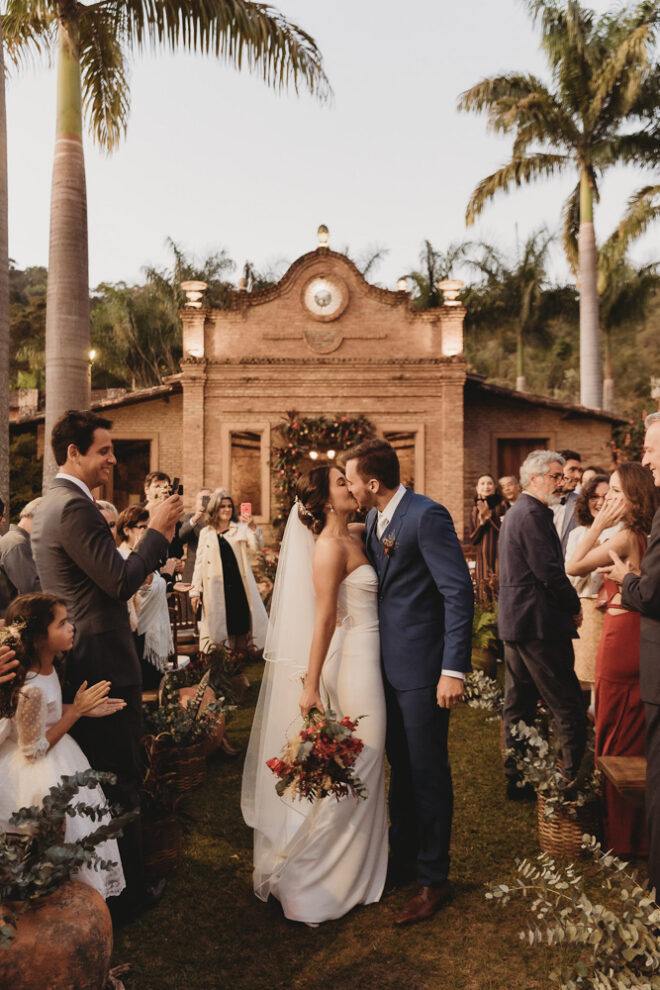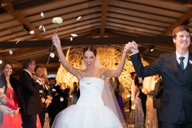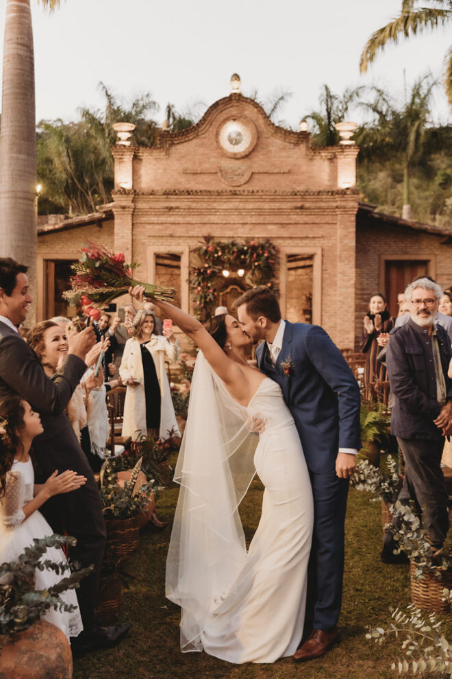 Vamos falar da beleza da noiva, que estava com um ar clean em uma extrema elegância. O penteado e a make ficaram belíssimos, e o vestido by Camila Fraga construído para realizar um sonho, em cetim de seda italiana, com tule francês e um lindo volume. AMEII!