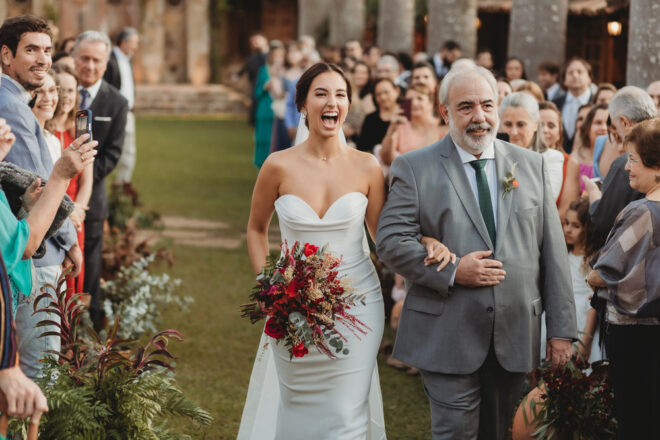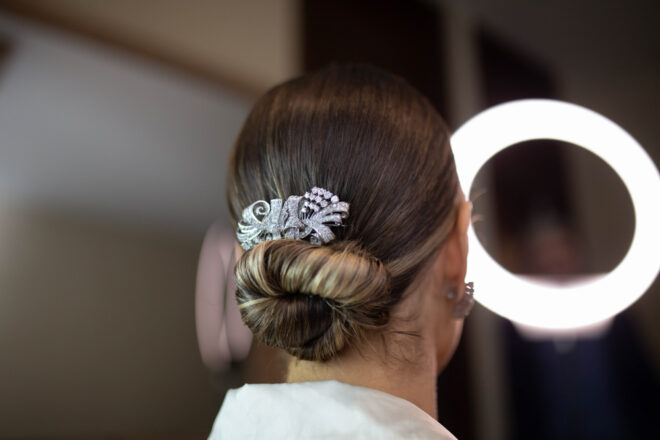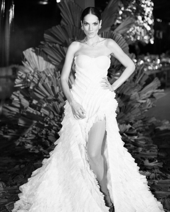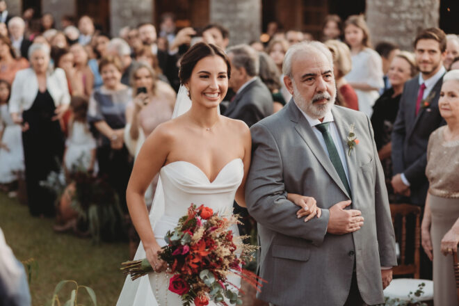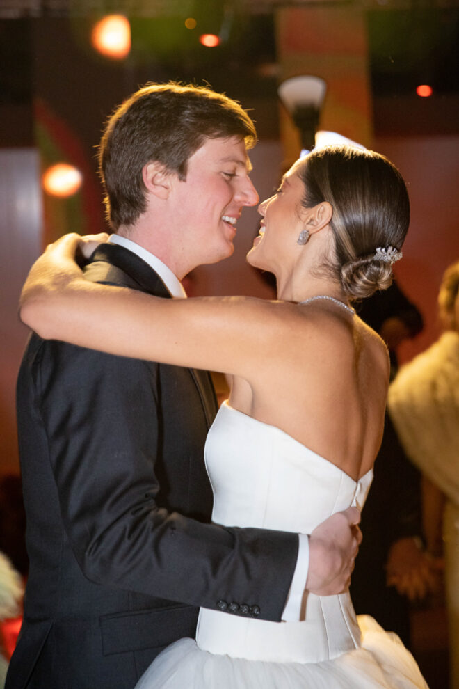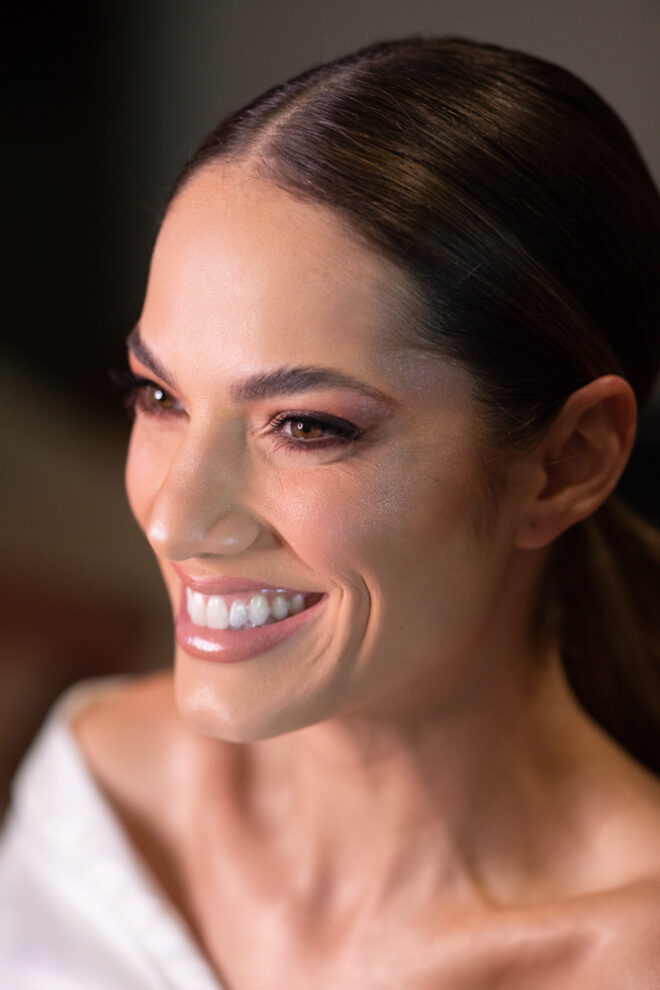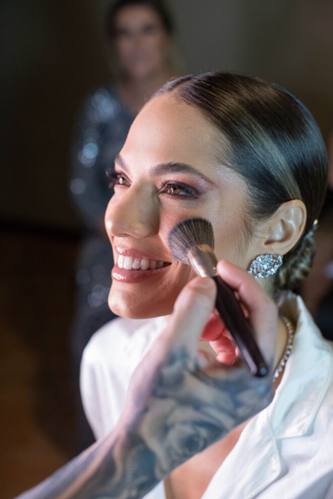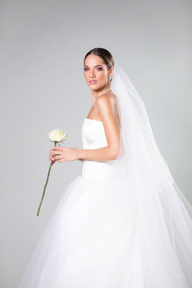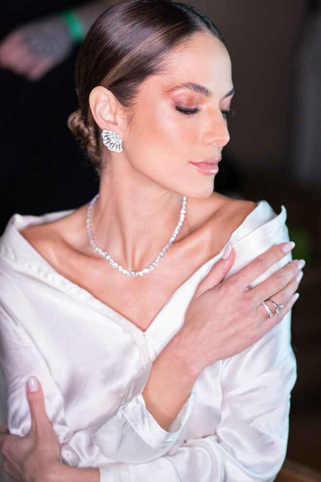 Vamos falar da beleza da noiva, que estava com um ar clean em uma extrema elegância. O penteado e a make ficaram belíssimos, e o vestido by Camila Fraga construído para realizar um sonho, em cetim de seda italiana, com tule francês e um lindo volume. AMEII!
