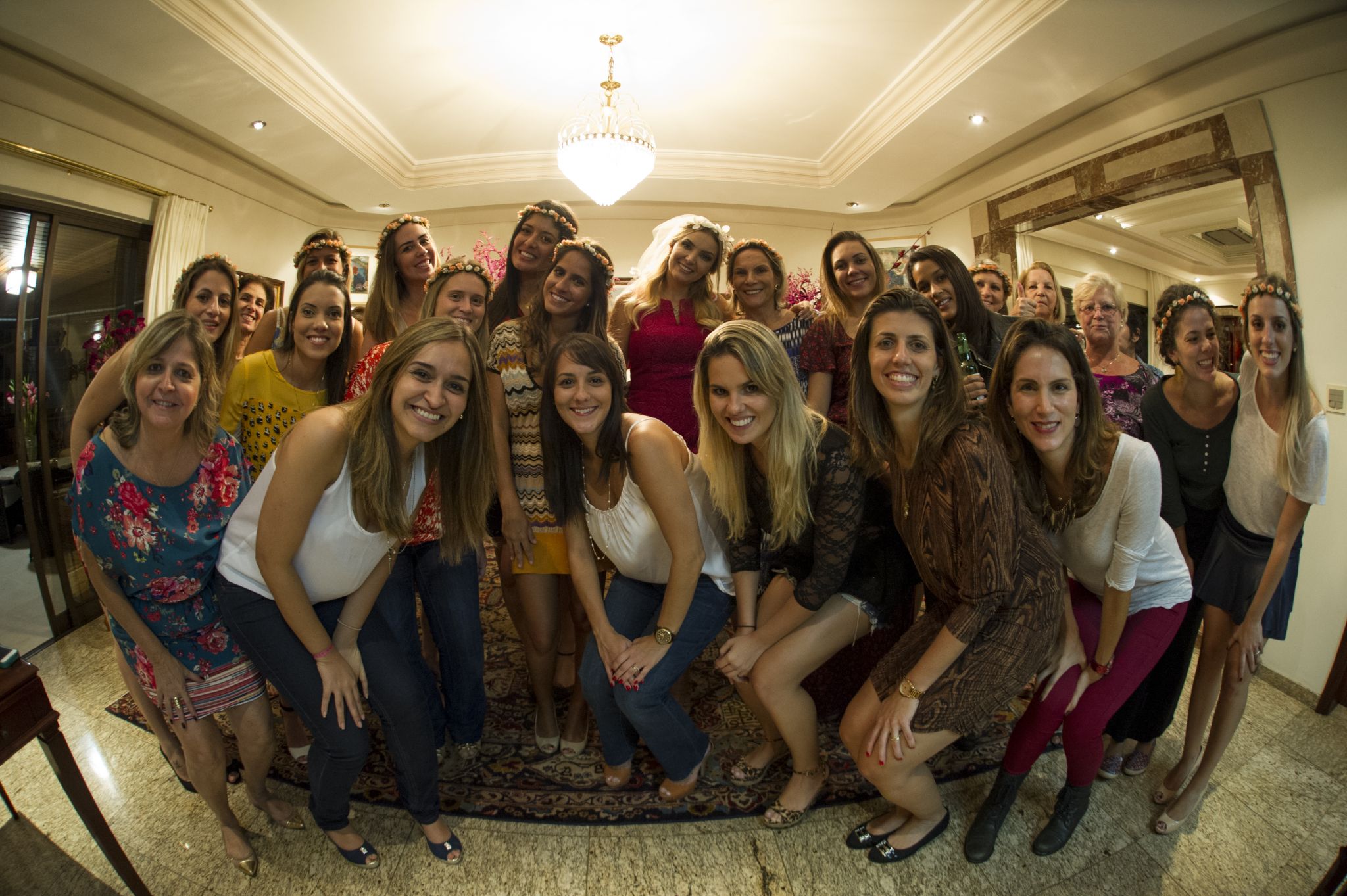 Minhas madrinhas fizeram coisas lindas pra mim: todas as madrinhas usaram coroinhas de flores (minha cara!), fizeram um vídeo de perguntas e respostas com o noivo que foi muuuuito engraçado, e o melhor, um vídeo estilo “arquivo confidencial” com amigos e família. Todos foram às lágrimas com os depoimentos.