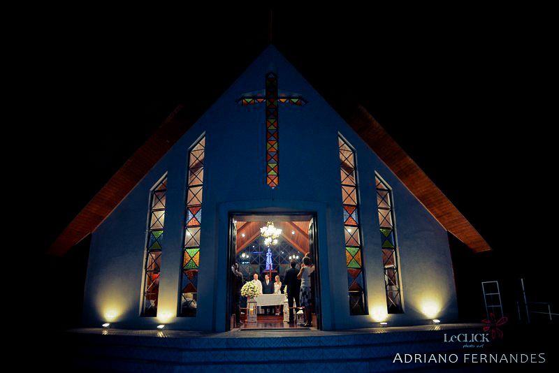 As cadeiras de acrílico fizeram um contraponto com os vitrais criados especialmente para a festa. Sob o altar , desenhamos um grande quadro, com imagens de anjos abençoando esta união. A direção de arte e cenografia foram muito importantes neste momento. O pantone escolhido foi o off white.