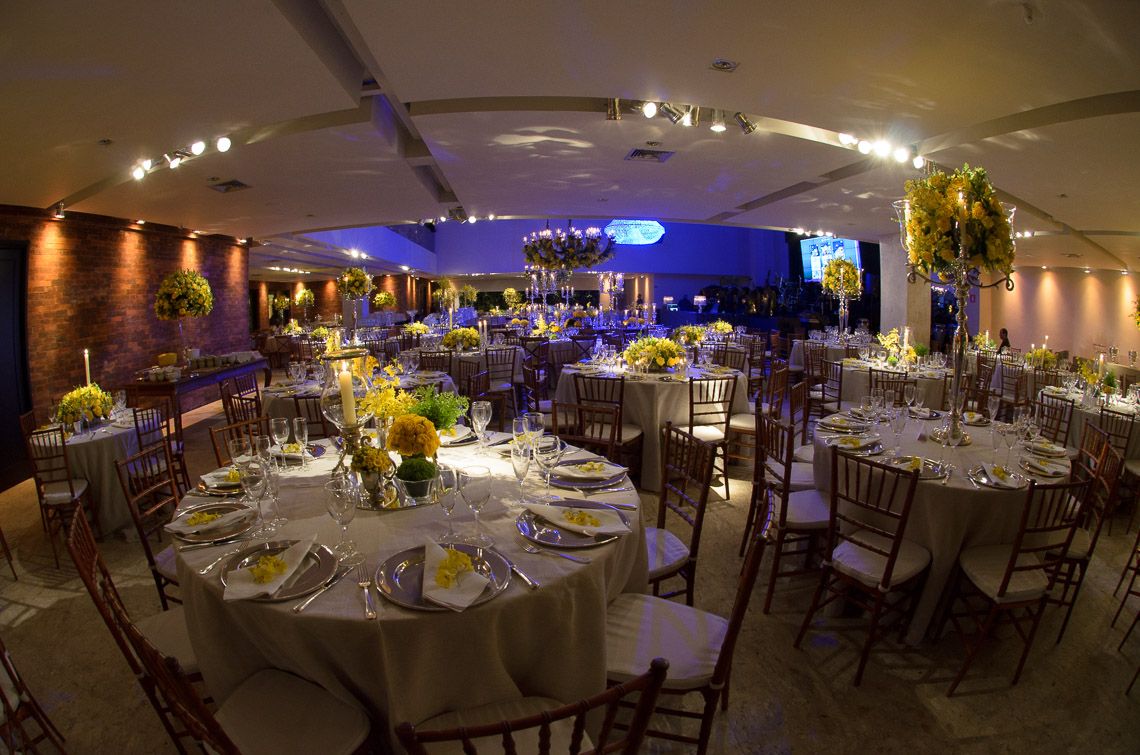 “Para a festa eu queria uma decoração viva e alegre, o Dan queria uma decoração bem clássica. Então o Pedrotti uniu tudo isso, eu escolhi o amarelo, Off White e dourado. A mesa de doces (Carol Melo e Tonisi) de 5m com o bolo da Alessandra Tonisi ficou na área externa da Casa Petra, onde uma cobertura de 18m foi montada para que os convidados pudessem degustar e confraternizar num longe especialmente produzido pela Ambiente Eventos. ( A mesa comunitária da família tinha um pequeno arranjo vermelho para o meu filho Giovanni, que havia acompanhado nossa prova de flores e falou para o André que queria tudo vermelho…rsrs)