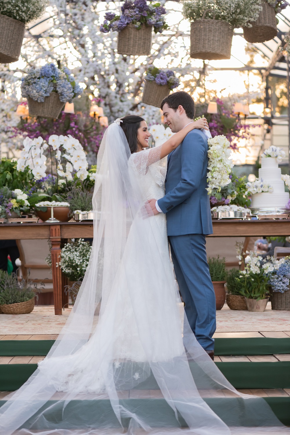 O vestido da noiva foi da Carol Hungria, com uma beleza natural e fluida estava radiante.