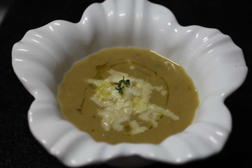 Sopa de grão de bico com alho poró
