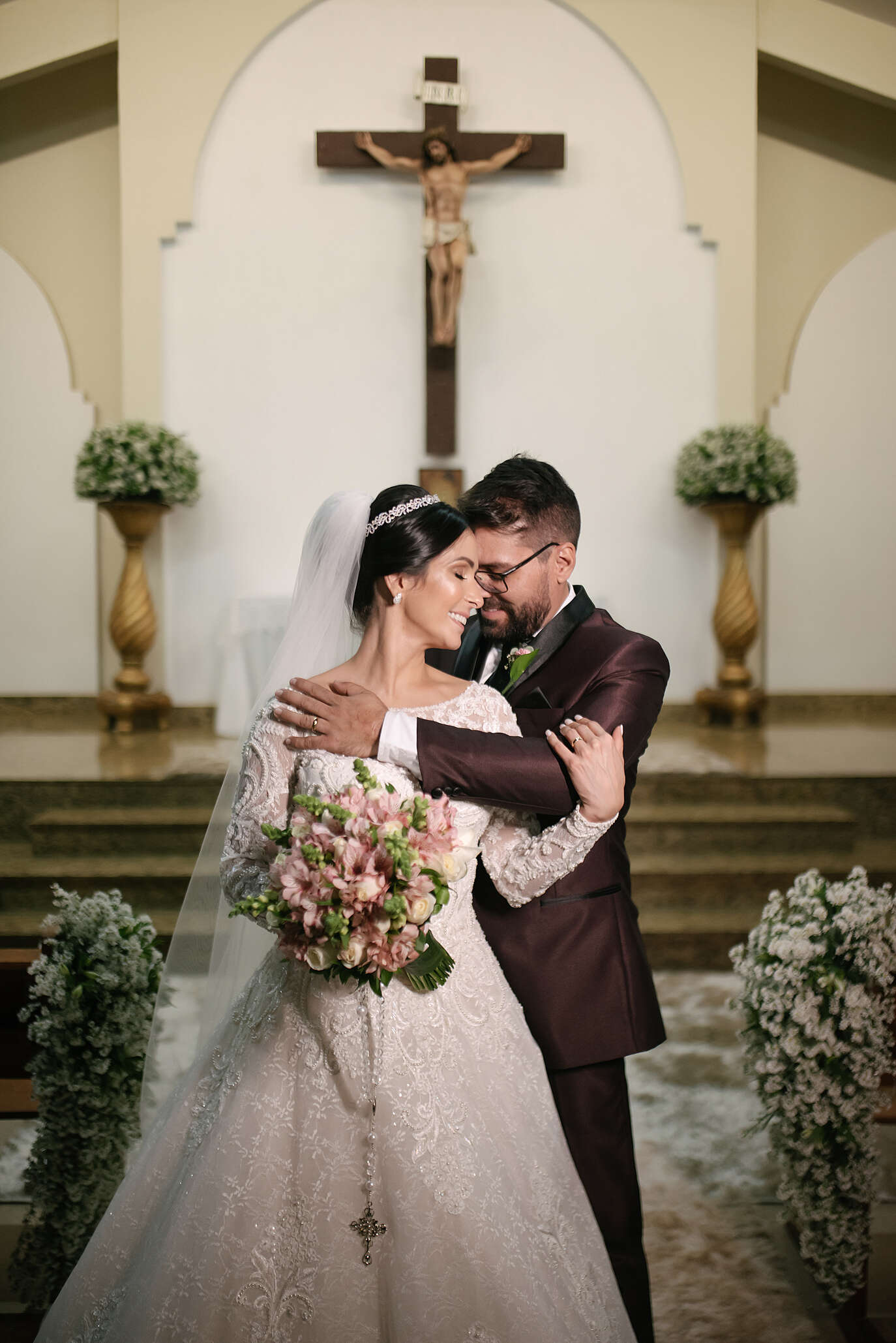 Bem casados e doces: Rochê tortas | Coral: Musical Alliance | Decoração: Eliet | Igreja: Paróquia Santa Teresinha – GO | Vestido: Cristiano Bernardes